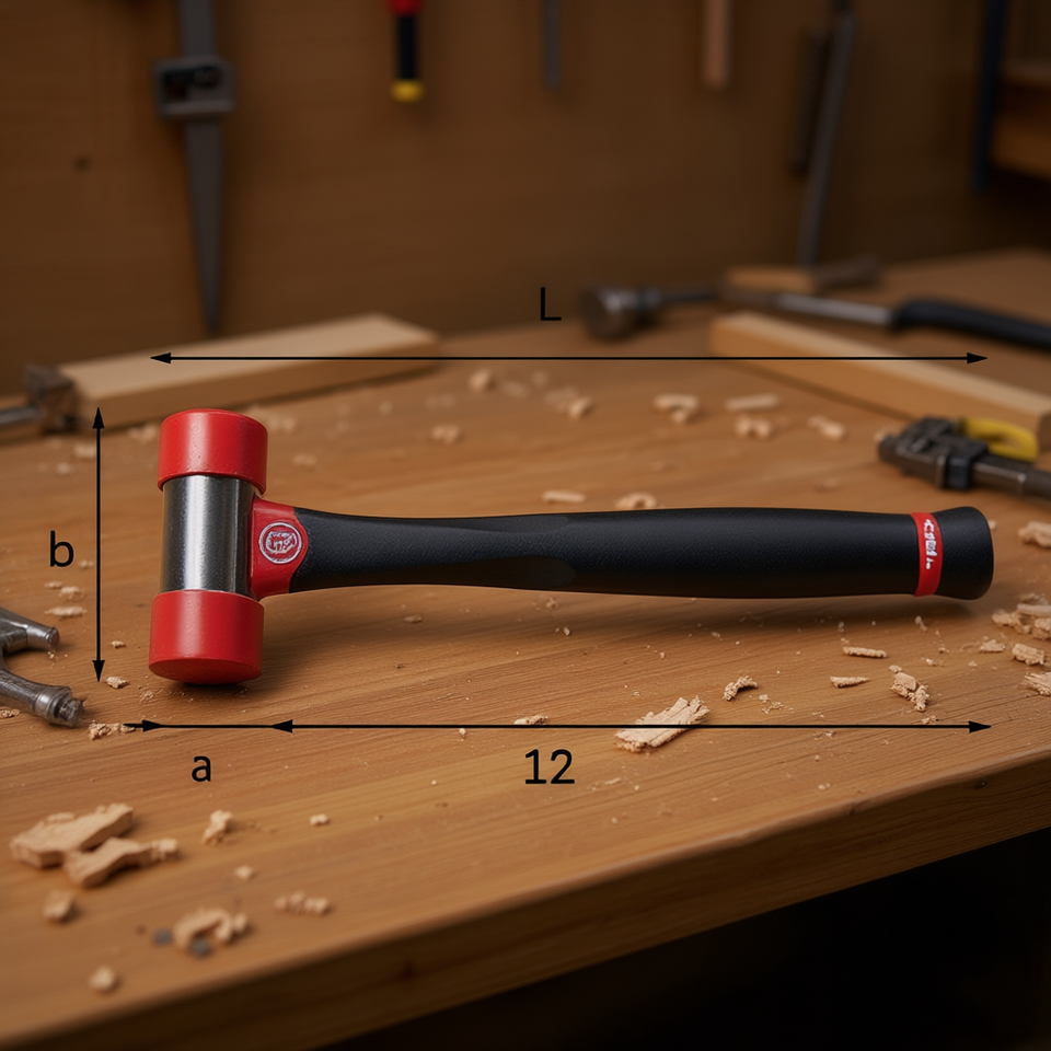 Martillo de goma 376 F de 12 pulgadas de largo con cabeza roja y mango negro para carpintería y ensamblaje