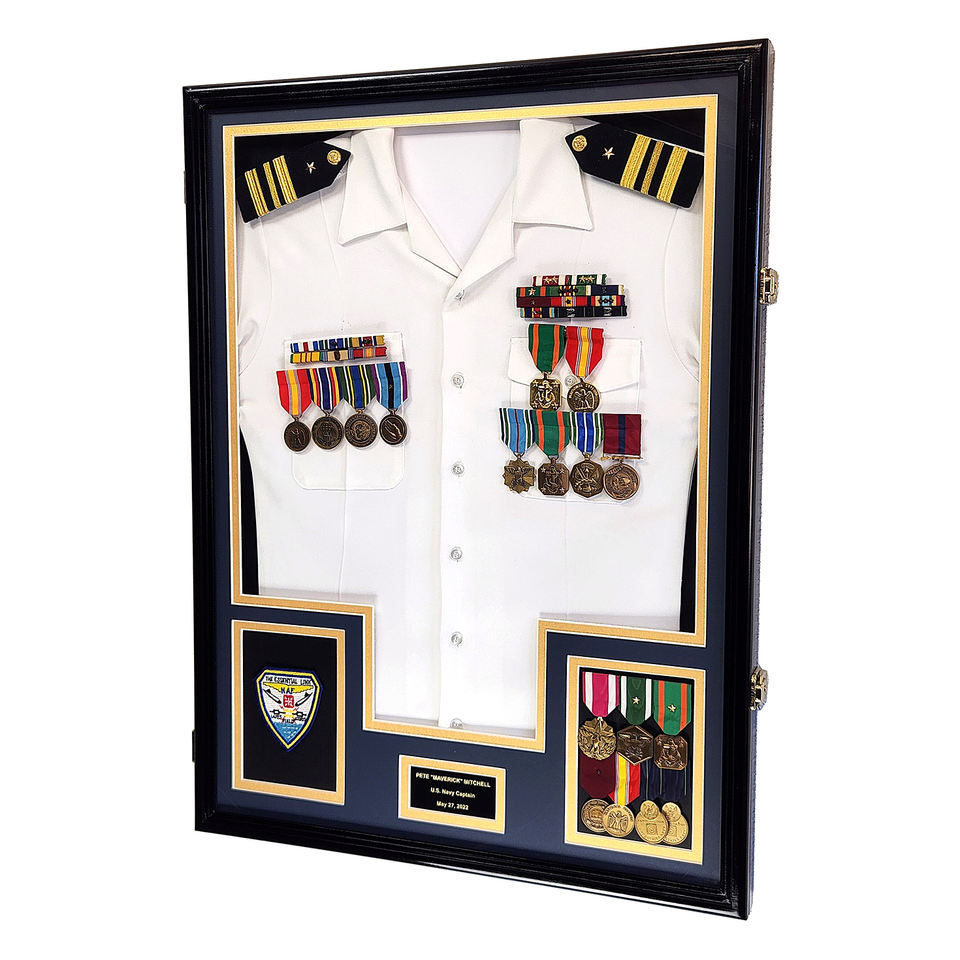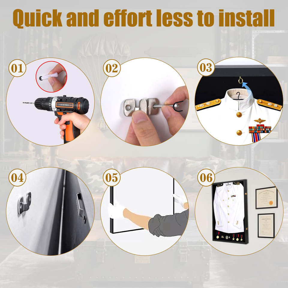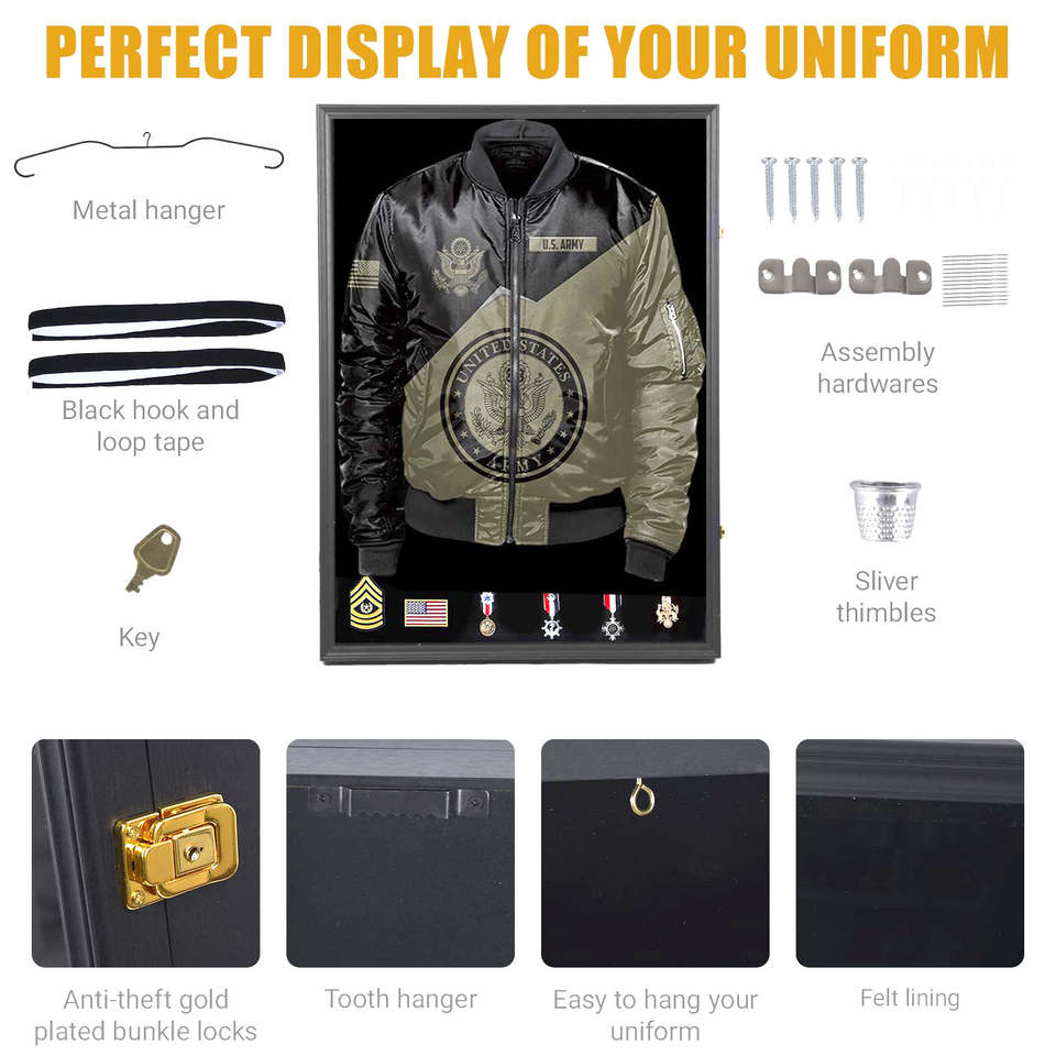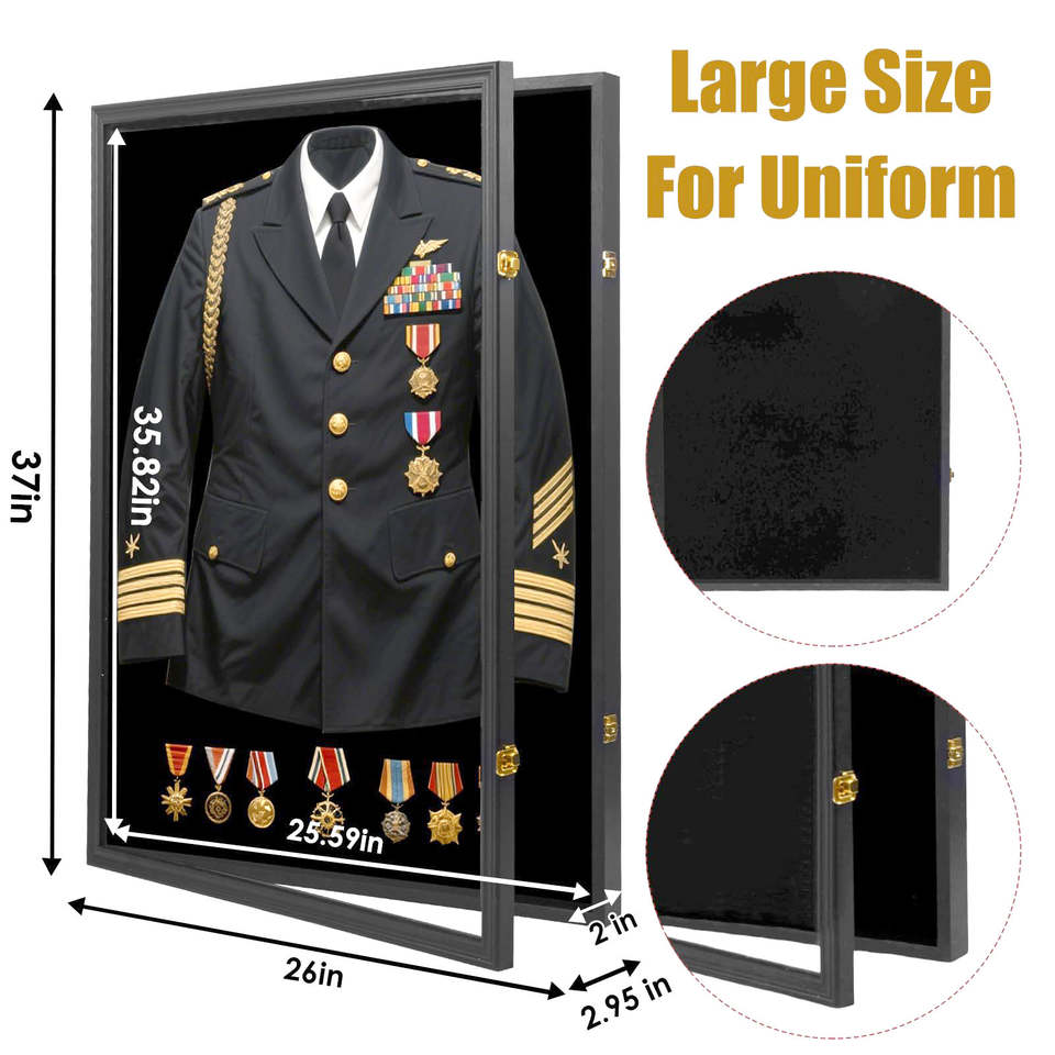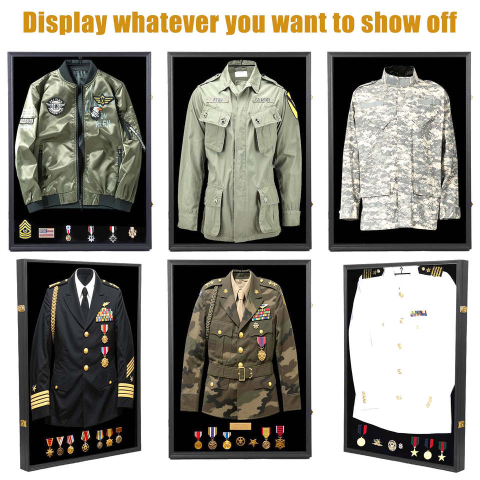 Caja de sombra de uniforme militar grande de 37x26 pulgadas, caja de exhibición, cerradura, Medalla de la Fuerza Aérea del Ejército, marco de cinta, marco de fotos, animales