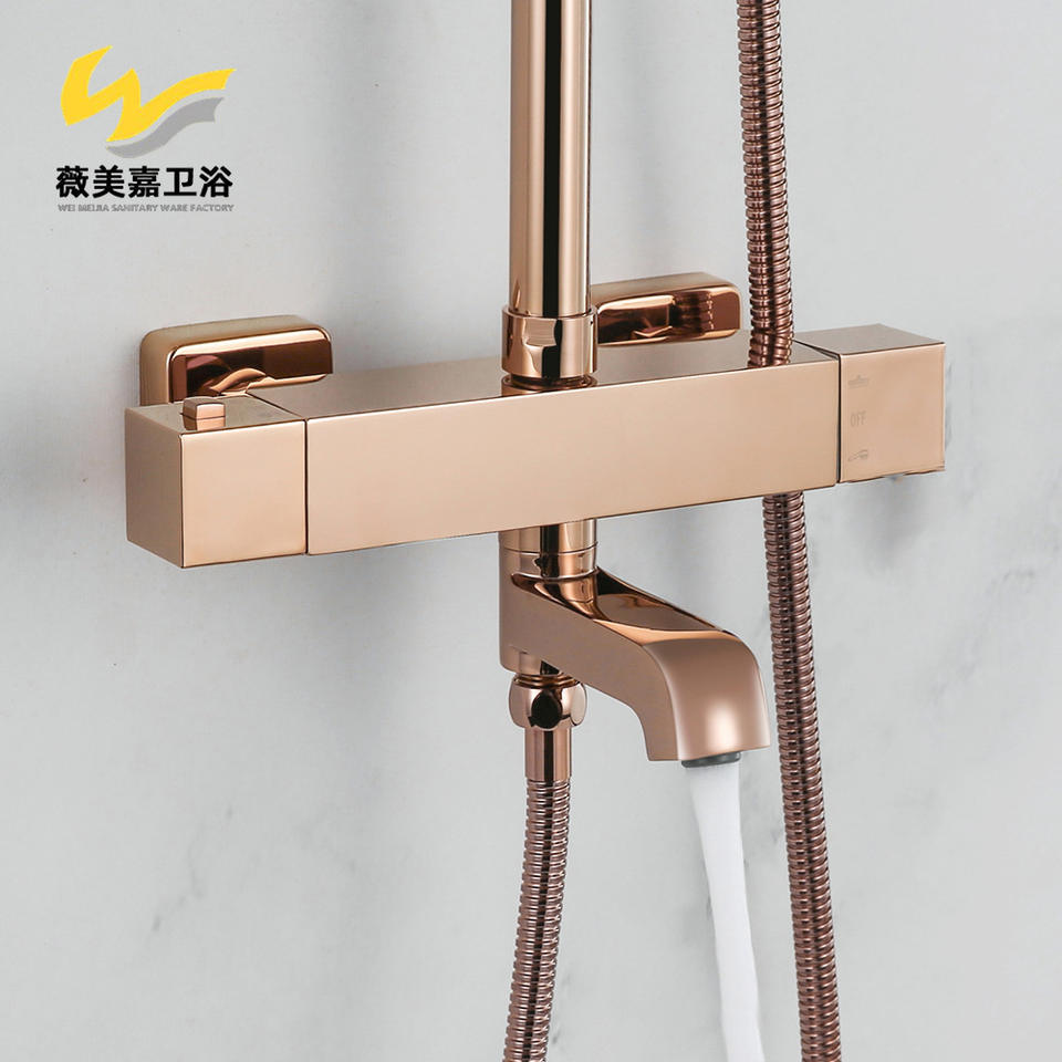 Juego de Grifería para Ducha Cuadrada de Cobre, Color Oro Rosa 38C, Suministro Exclusivo Transfronterizo, Tres Ajustes de Temperatura, Accesorios de Baño