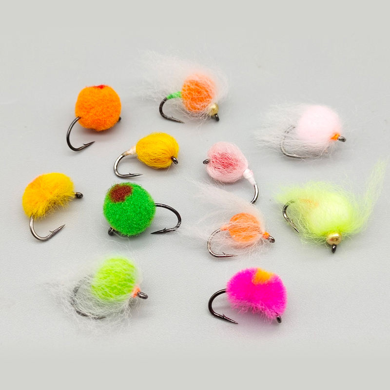 Kit de 38 piezas de huevos de pescado con Flybox negro impermeable, moscas de trucha, señuelo de mosca de salmón de agua dulce para River Lake & Stream