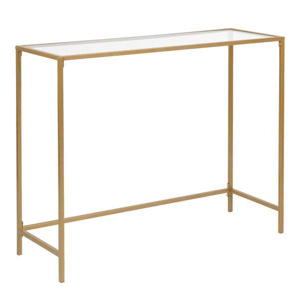 39.4\" Modern Console Sofa Table with Tempered Glass Top and Metal Frame for Entryway or Living Room Model 51028186