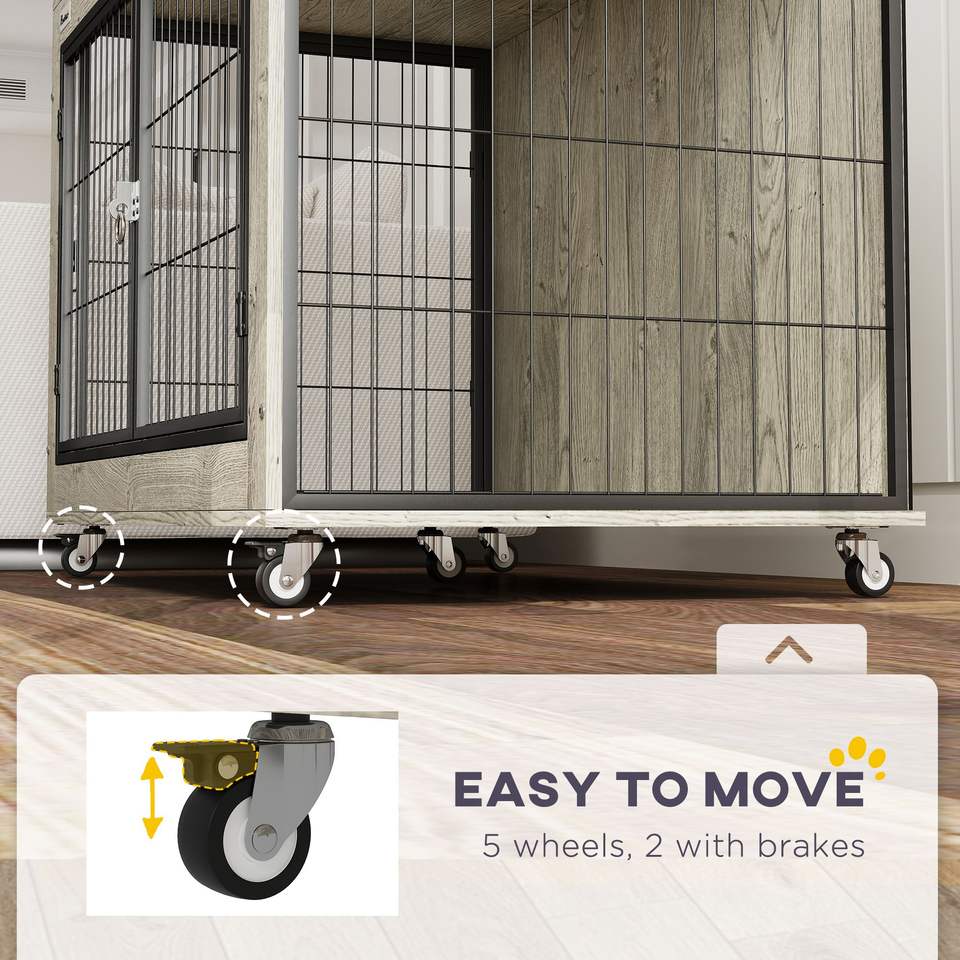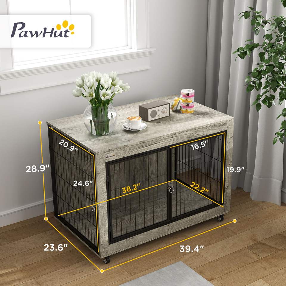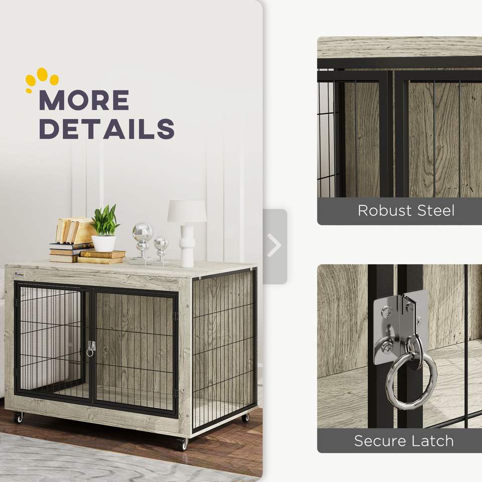 Mesa Auxiliar Gris de 39 Pulgadas con Ruedas para Jaula de Perro, Puerta Lateral Intercambiable para Perros Grandes