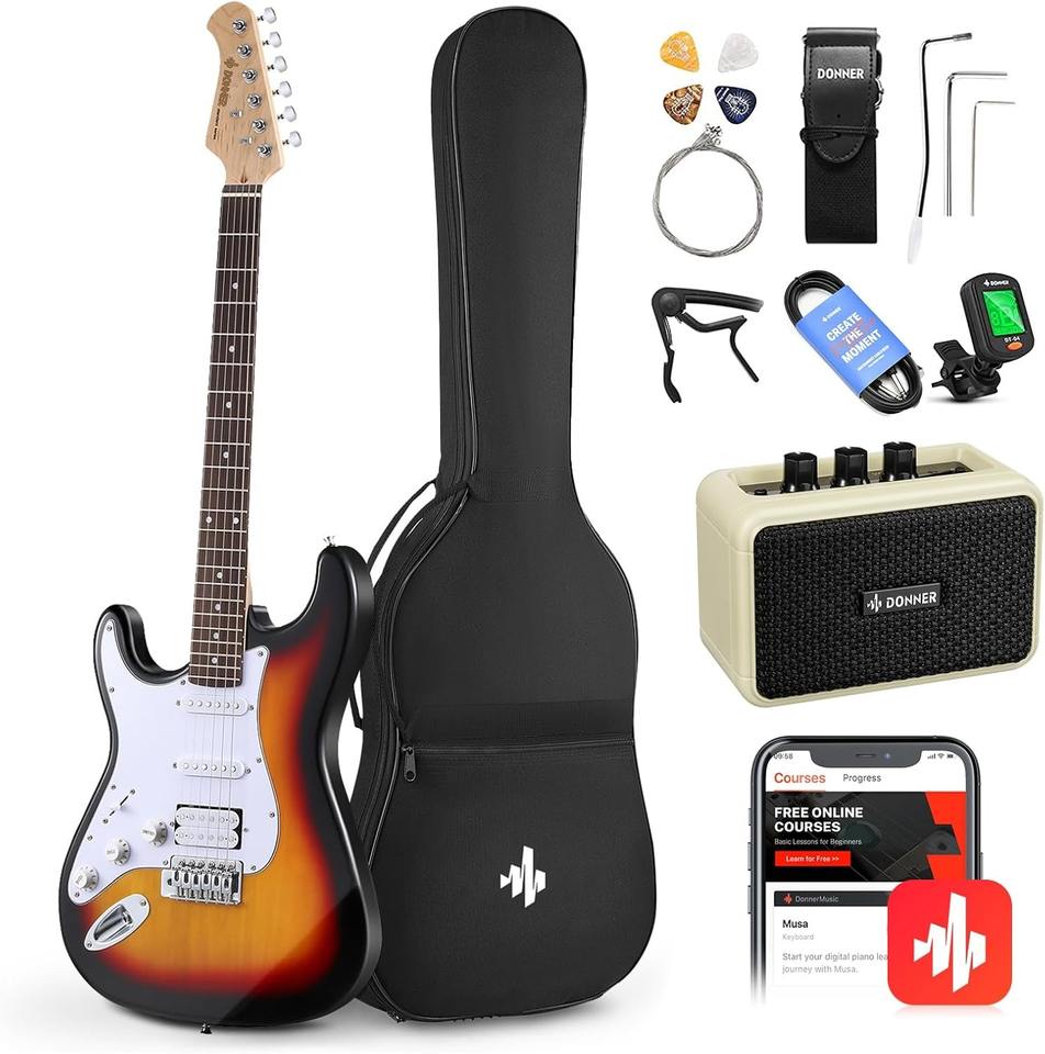 Kit de Guitarra Eléctrica de 39 Pulgadas, Cuerpo Sólido, Color Sunburst, para Principiantes, con Amplificador, Funda, Capo, Correa, Cuerdas, Afinador