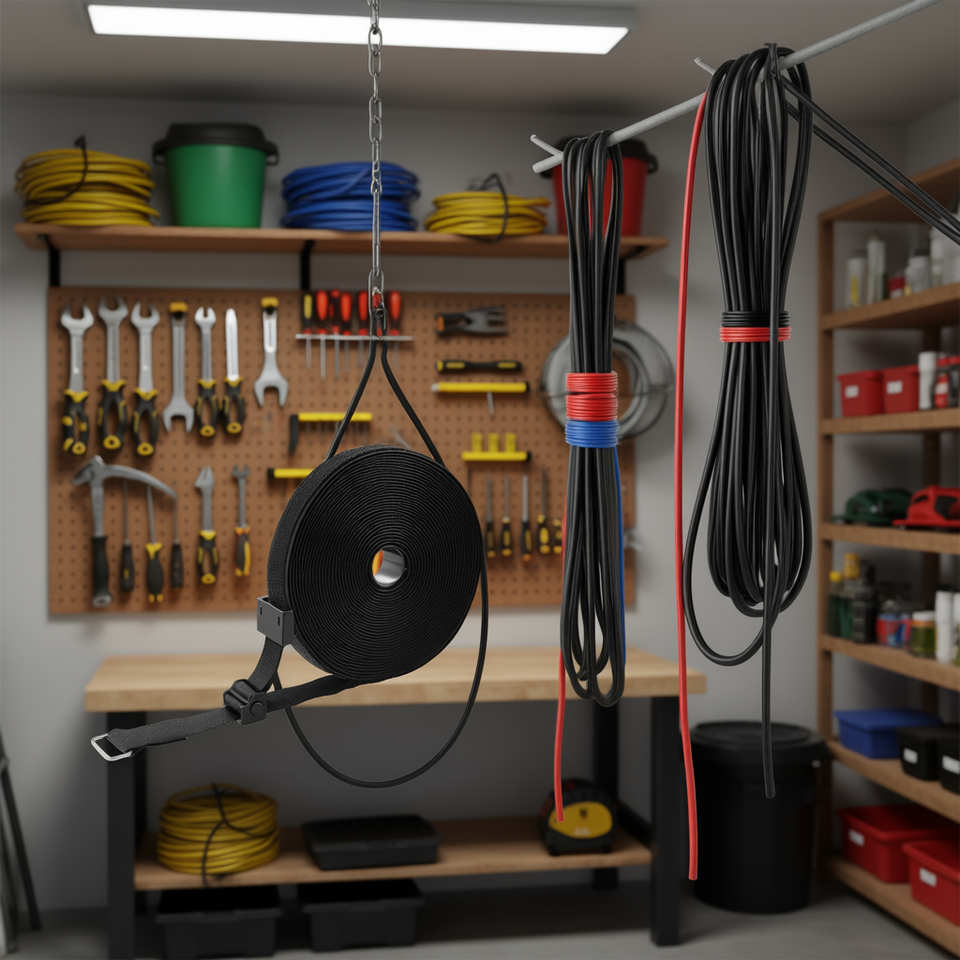 Bridas de nailon reutilizables de 393.7 pulgadas con gancho y bucle para gestión de cables y organización de garajes