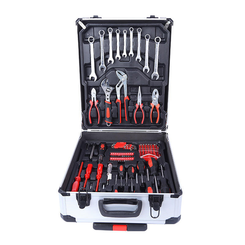 Juego de herramientas de mano de reparación automática, con Llave de trinquete, llave de tubo, martillo, alicates, destornillador en caja de aluminio, 399 Uds.