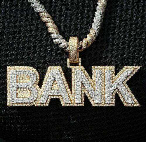 Dijes con Letra Inicial BANK Personalizada, con Diamante de Corte Redondo de 3 Quilates, Chapados en Oro Rosa de 14K, para Fiesta