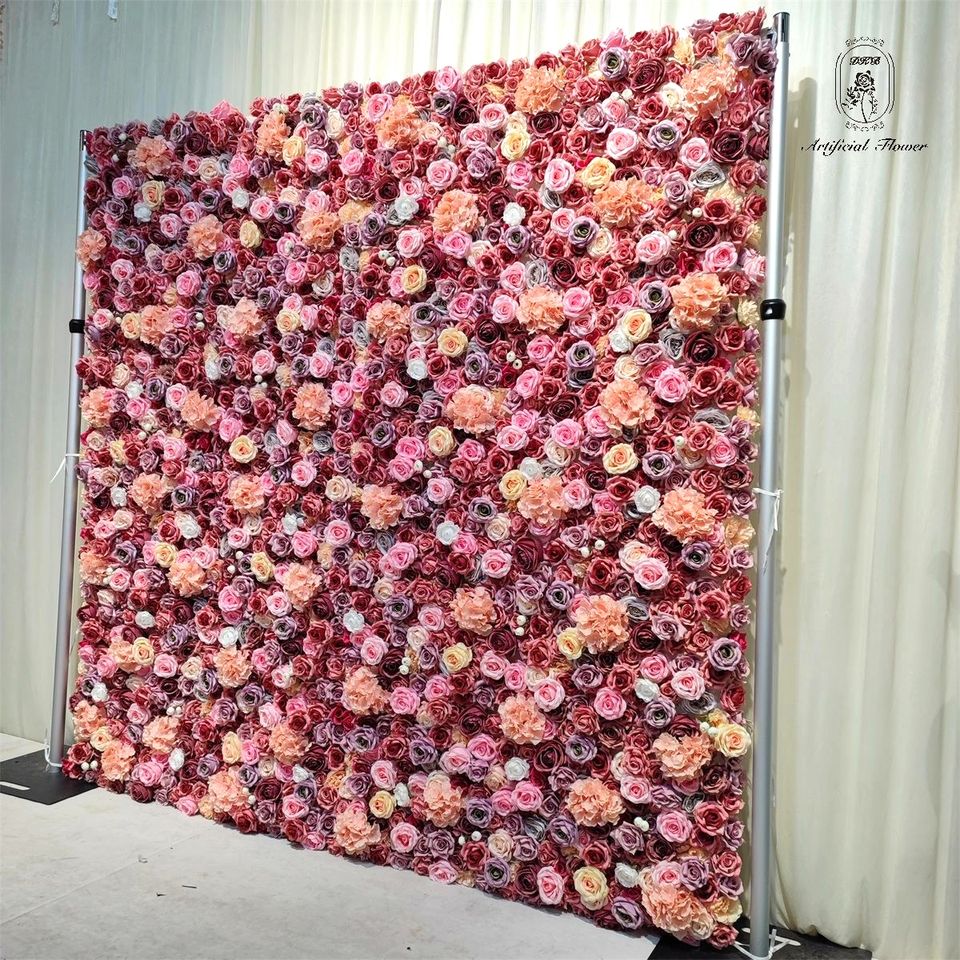 Proveedor de flores artificiales 3D 5D HQ019 tela decoración artificial enrollable tela de boda DKB fondo de pared de flores