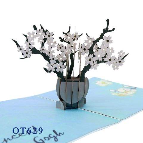 Tarjeta Pop-up 3D de Árbol de Albaricoque de Vincent Van Gogh, Tarjeta Pop-up de Papel Cortado con Láser, Flores Hechas a Mano, Regalo al por Mayor, Kirigami, Éxito de Ventas