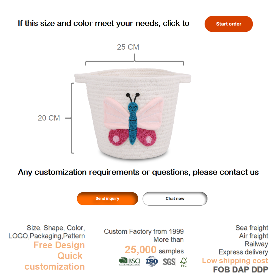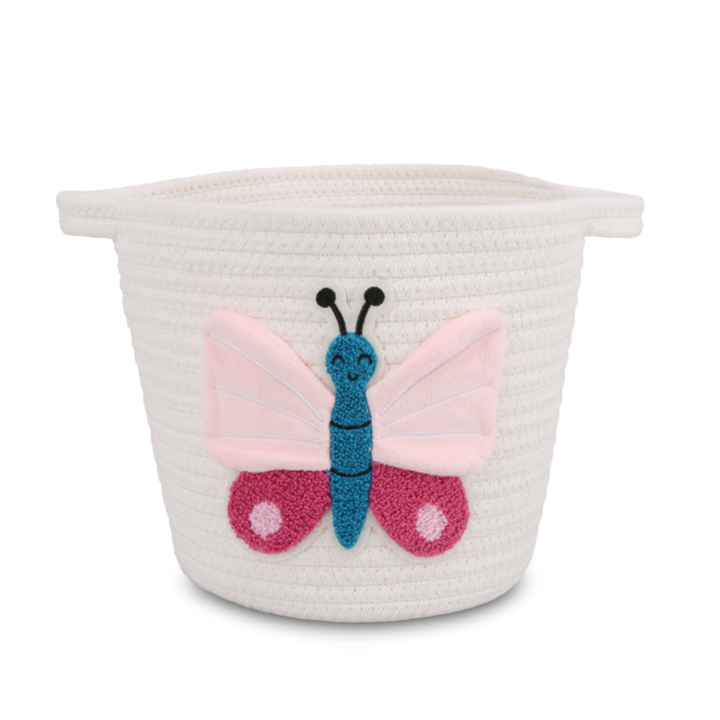 Cesta de Almacenamiento Redonda de Cuerda de Algodón con Diseño de Mariposa 3D, Blanca, Decoración para Cuarto de Niños, Cesta de Regalo Multiusos con Asa para Fiestas y Bodas