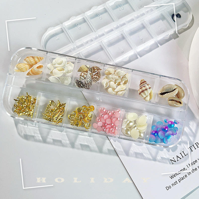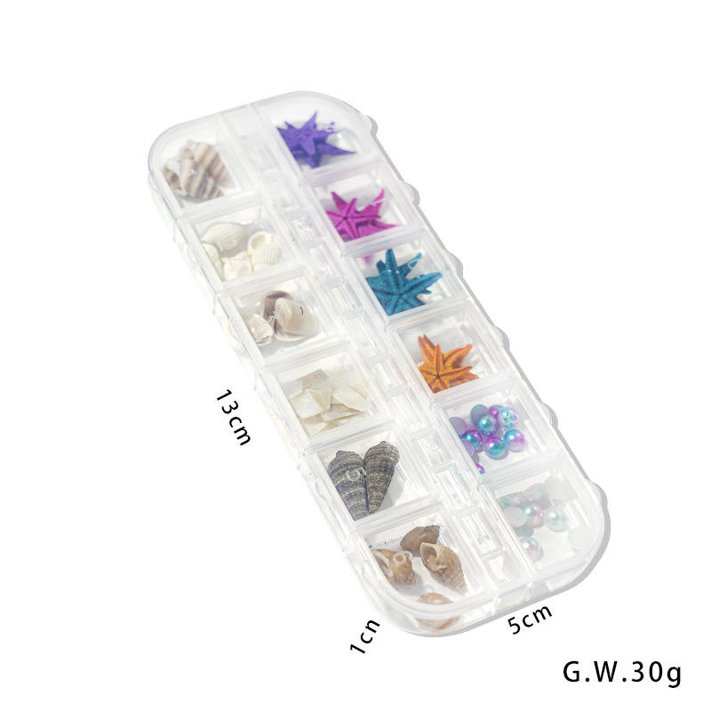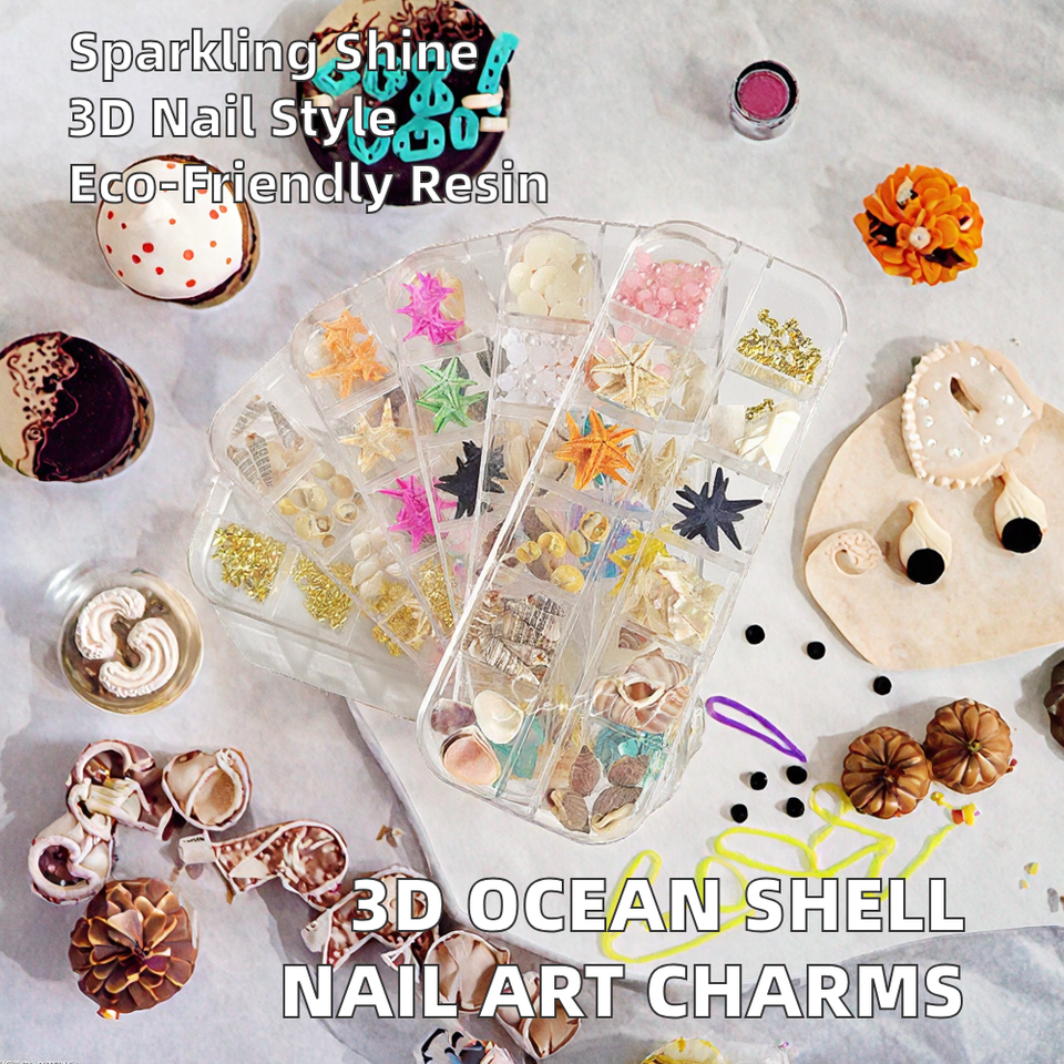 Diamantes de imitación de uñas de cristal colorido 3D Ocean Shell Star Beach Charm Materiales de resina natural para decoración de uñas