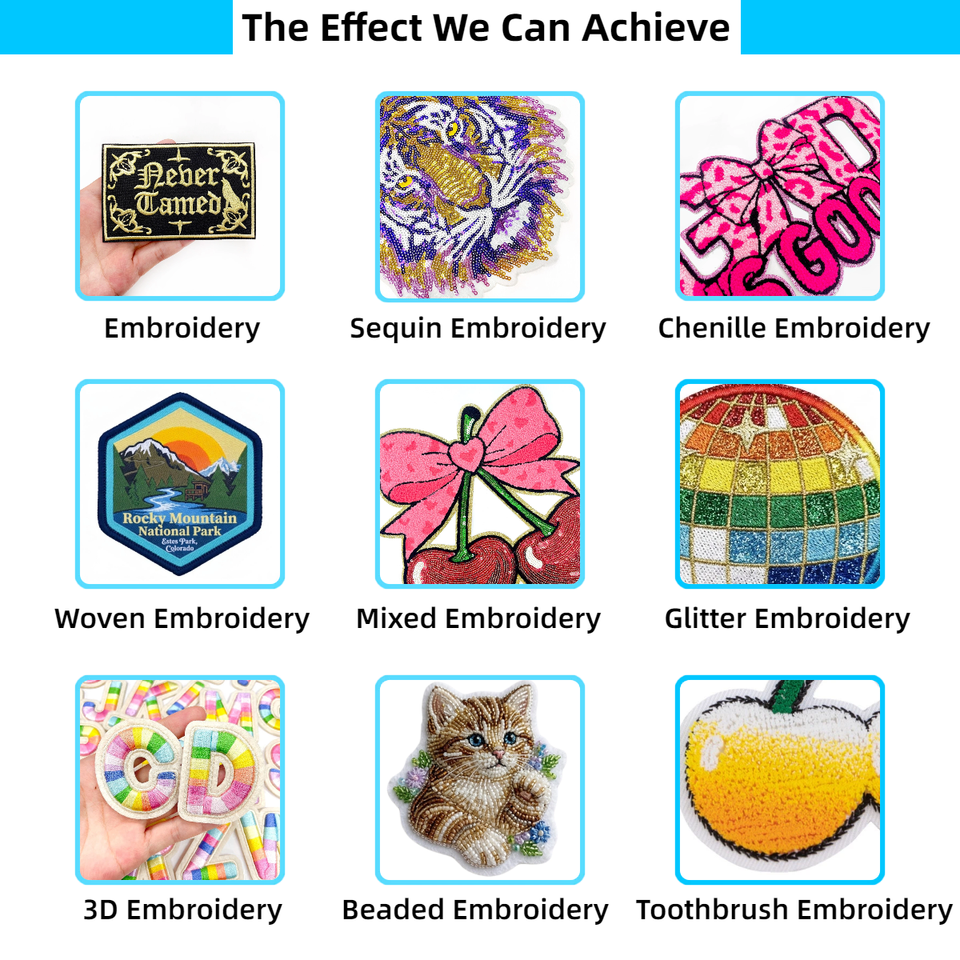 Nombre del producto:Parches bordados personalizados / Parche de lentejuelas / Parche de chenilla / Logotipo personalizado