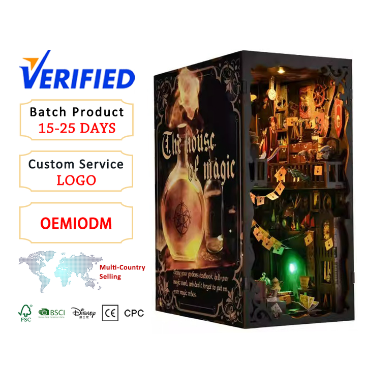 Inserto para Estantería Rincón de Lectura 3D DIY - Decoración de Estantería en Miniatura Mágica, Kit de Rompecabezas de Madera para el Hogar y Regalo