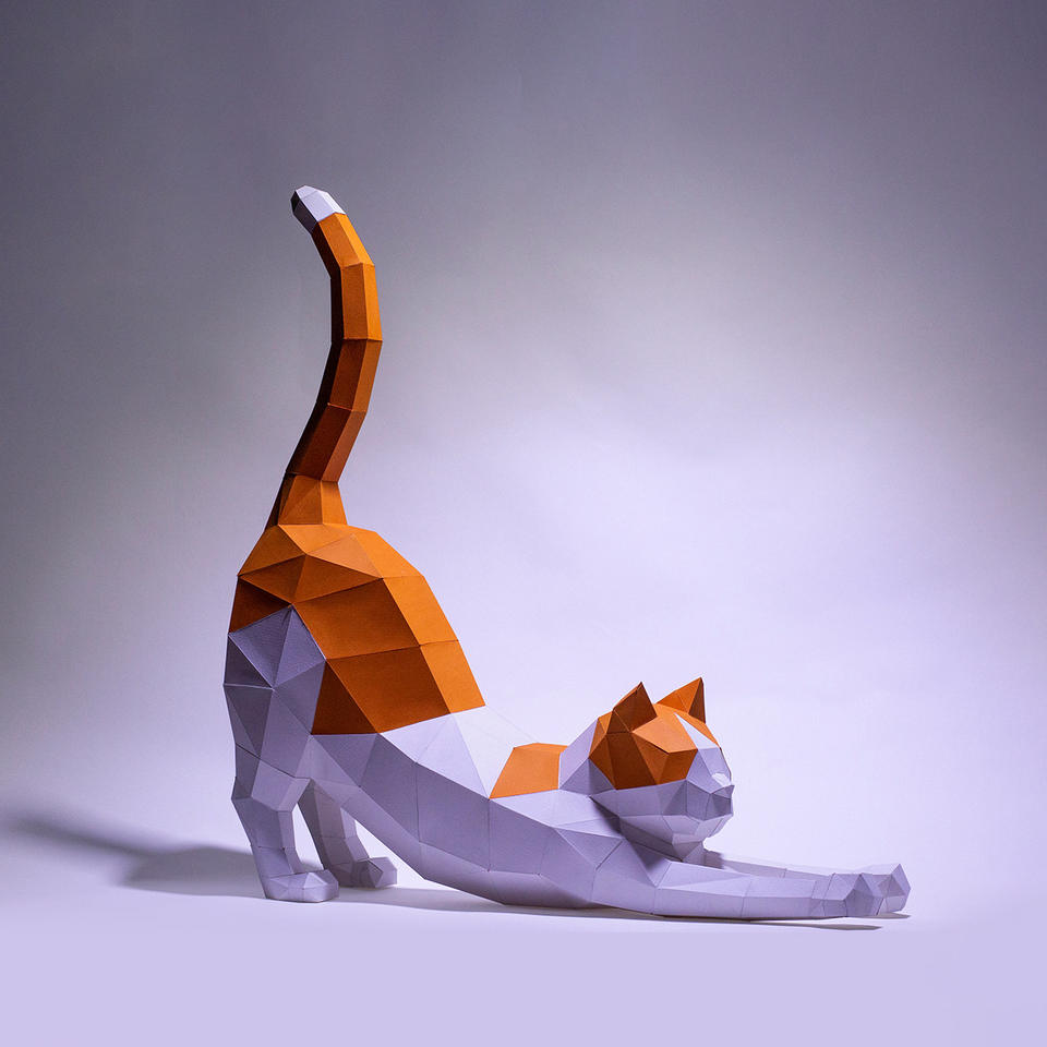 3D DIY hecho a mano Origami papel artesanía gato estiramiento adornos decorativos para el aula tarea Anime Animal estilo