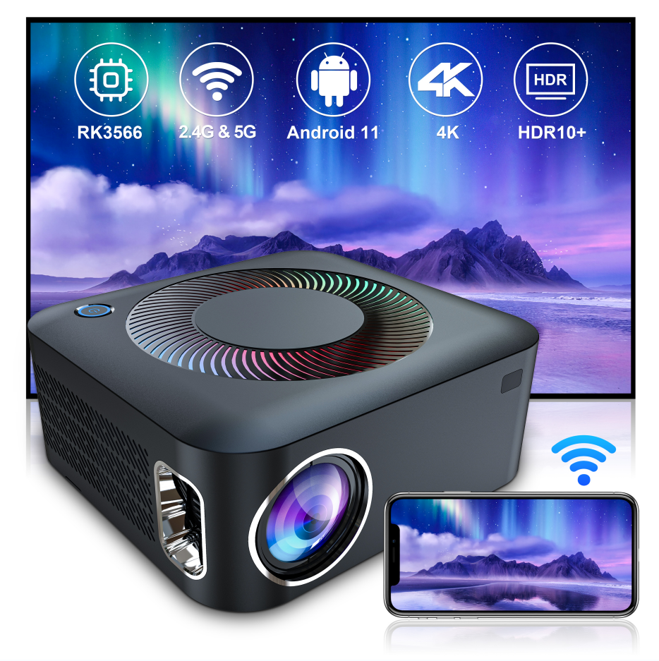Proyector Inteligente 3D con Pantalla, RK3566 Quad Core, Android 11, Proyectores para Exteriores X5 HD Nativo, Video Portátil, Cine en Casa