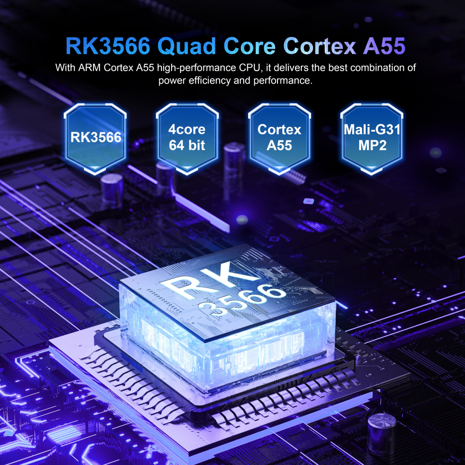CPU:Corteza quad-core A55 del BRAZO RK3566