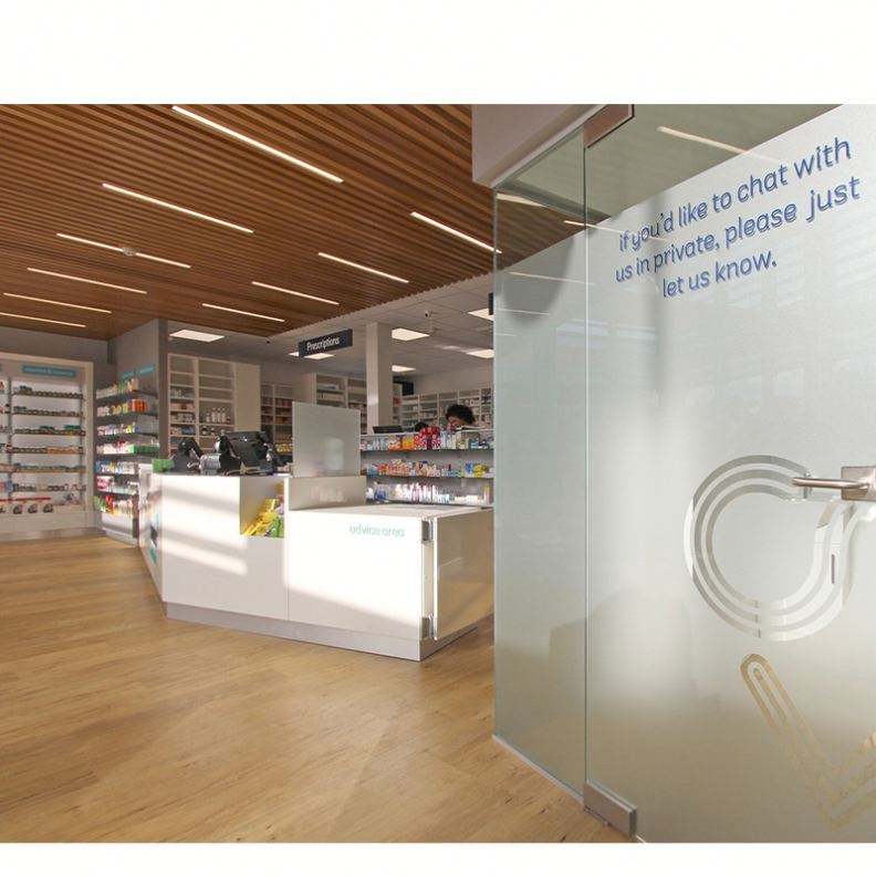 Diseño interior de la tienda de la farmaciaNombre del elemento