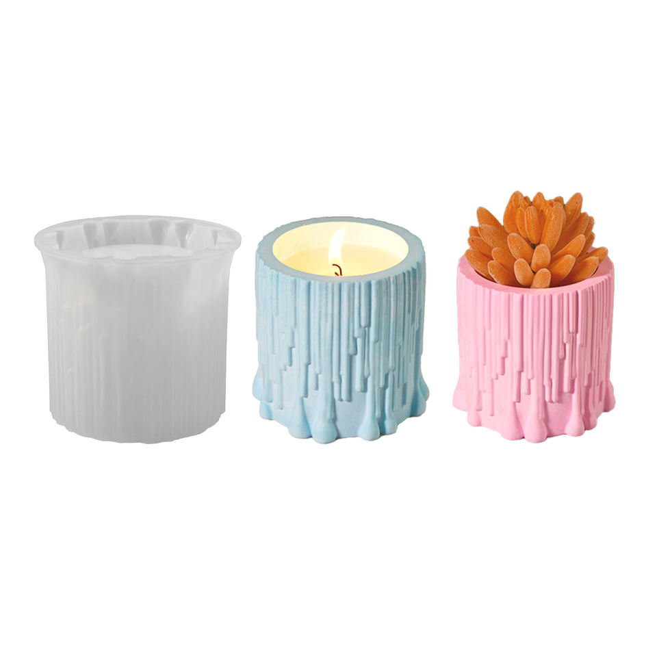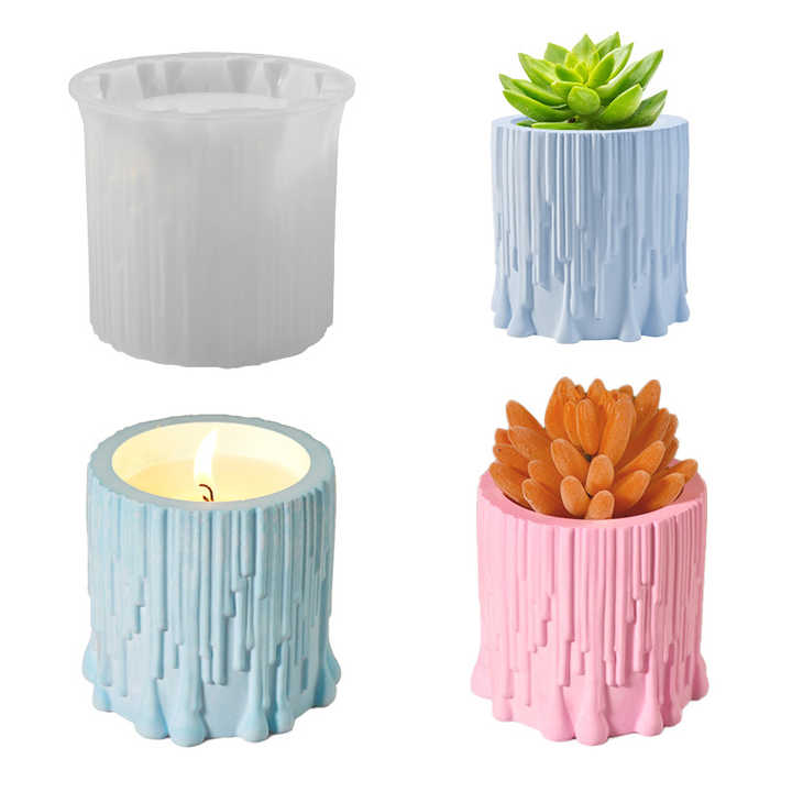 Molde de silicona con forma de tronco de árbol fino de fácil funcionamiento 3D para florero de resina de cemento Diy, portavelas