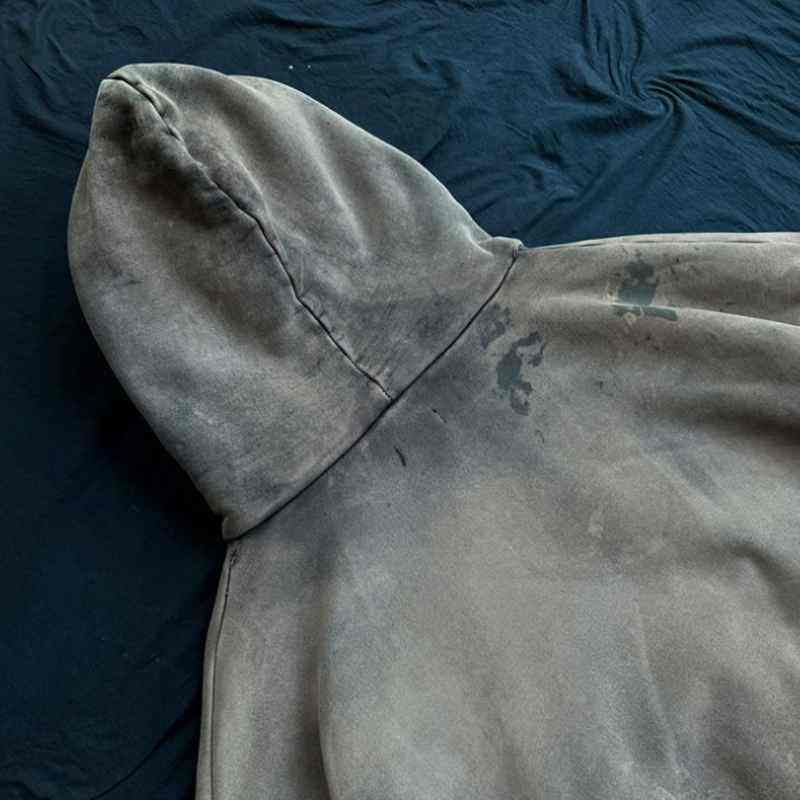 Sudadera con Capucha Estilo Urbano con Logotipo Personalizado en Relieve 3D, Lavado Ácido, Parche Bordado Desgastado de Alta Densidad, Servicio OEM
