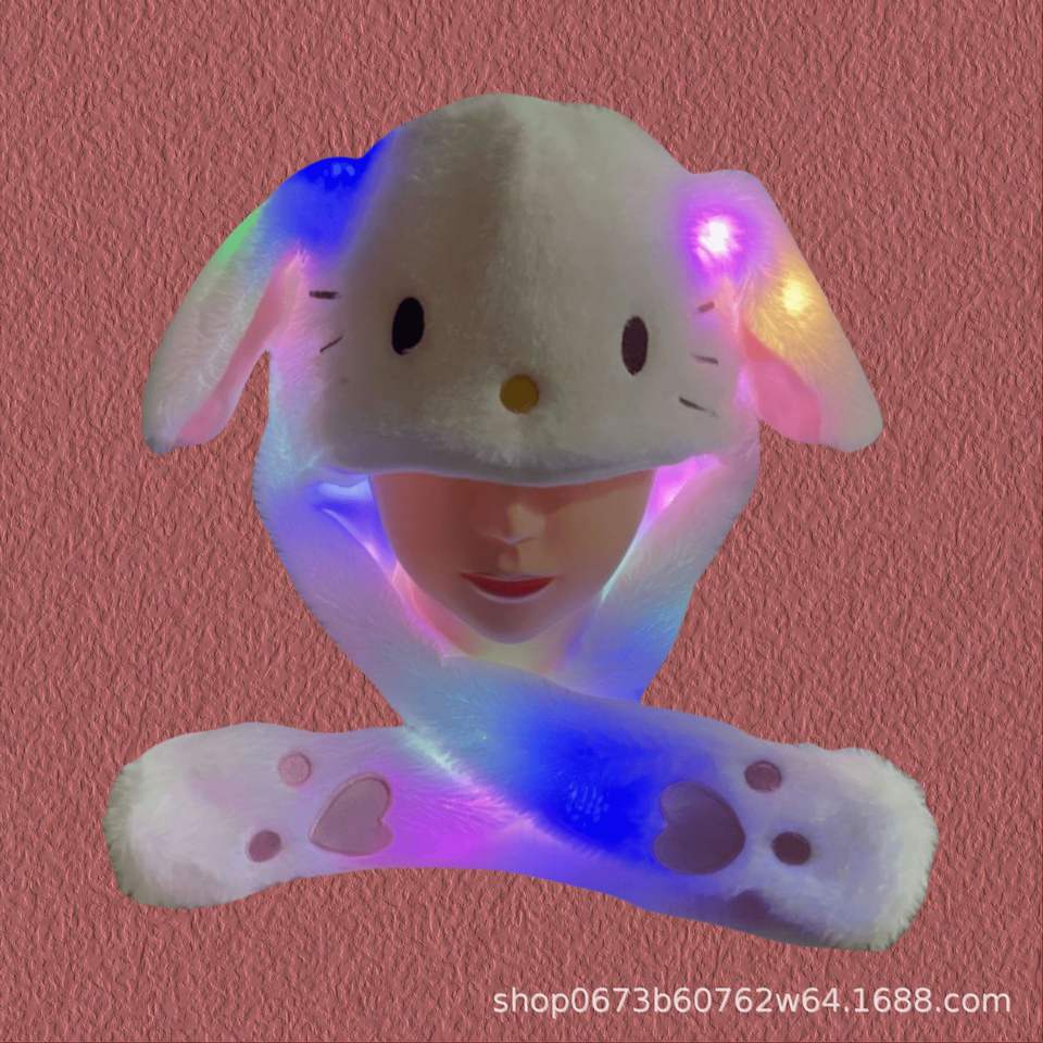 Gorro de invierno con luz LED y orejas de conejo bordadas en 3D, gorro magnético impermeable de felpa con Airbag, gorros tejidos con patrón de lazos de frutas suaves