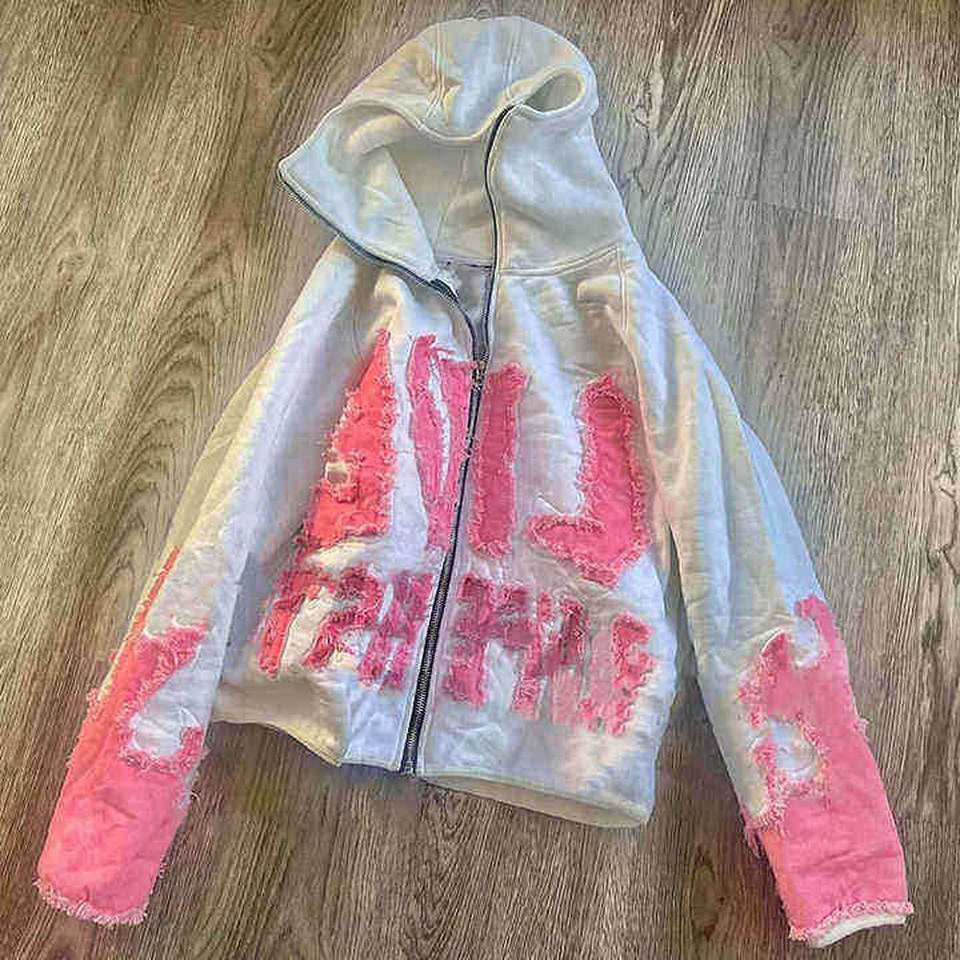 Sudadera con Capucha Vintage con Diseño de Pecho Bordado en 3D, Estilo Nuevo, Estampado Agrietado y Detalles de Costura, Lavada
