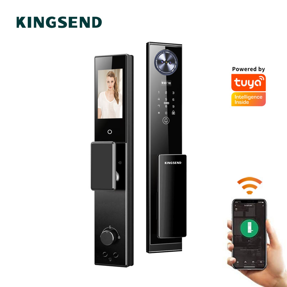 Cerradura de puerta automática eléctrica sin llave, cerradura de huella dactilar inteligente con reconocimiento facial 3D, contraseña de vena de Palma, Wifi Tuya