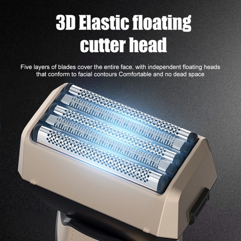 Afeitadora Eléctrica 3D Flotante de 5 Cuchillas, Impermeable IPX7, Afeitadora de Viaje, 7500 RPM, Velocidad Turbo Mejorada