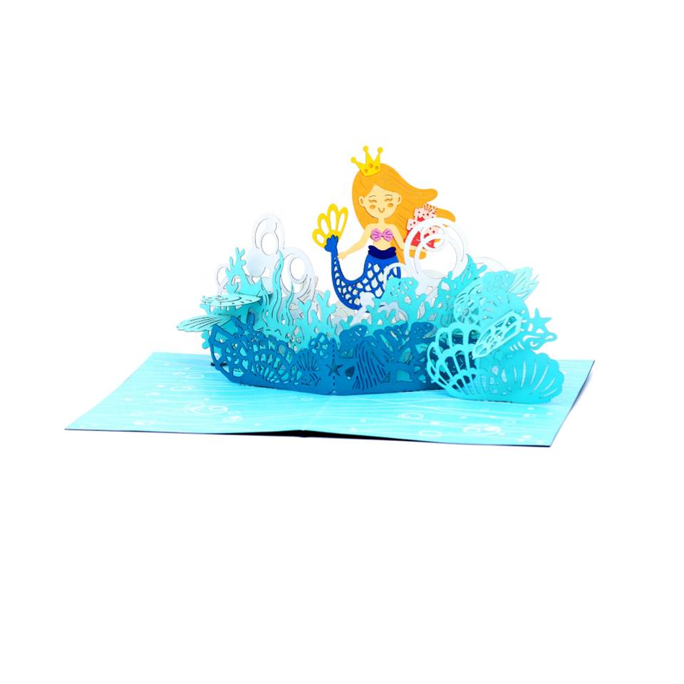 3D hecho a mano Pop-up Card Offset impreso sirena tarjeta de felicitación amor estilo papel recuerdo
