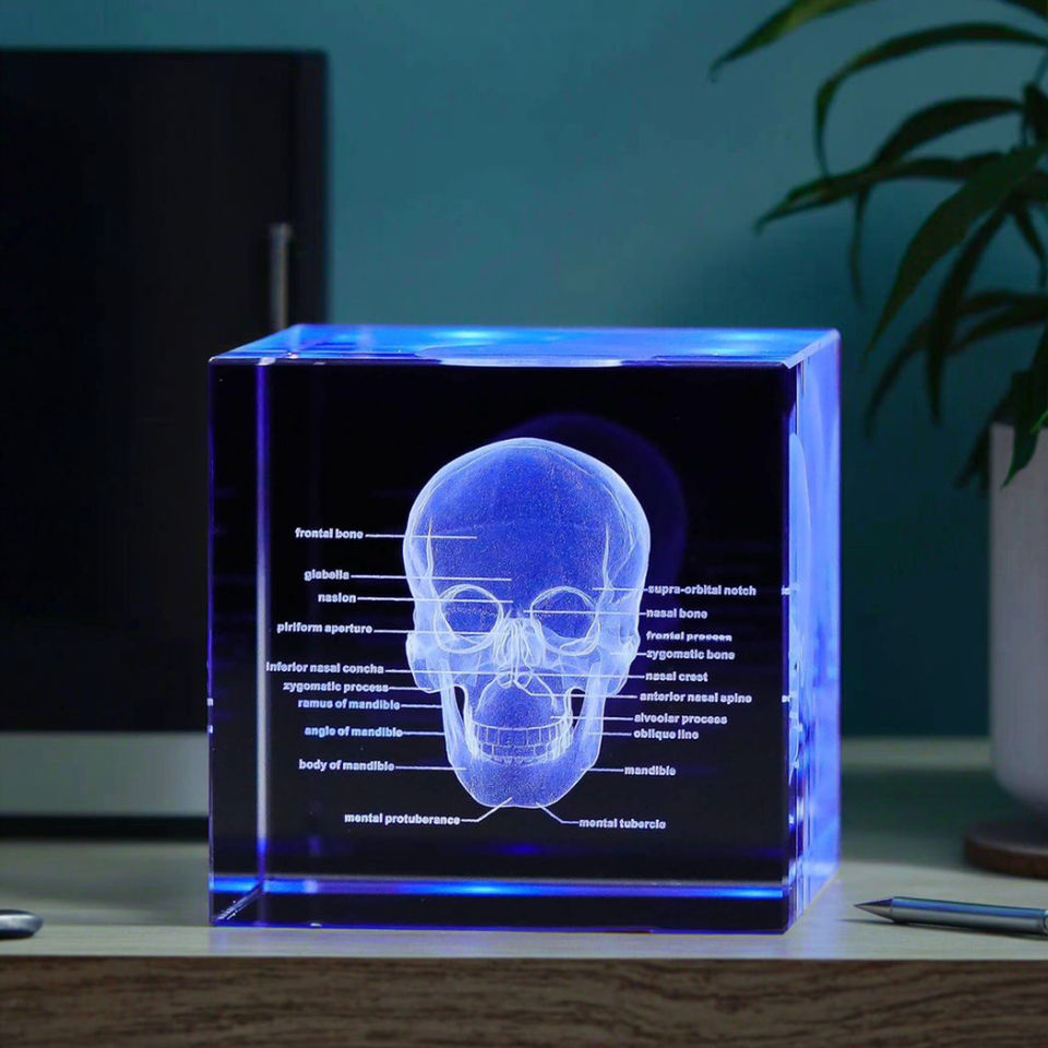 Cristal grabado con láser 3D, modelo anatómico de cerebro humano, grabado láser 3D, Cubo de bloque de cristal en blanco para regalo de cirujano médico