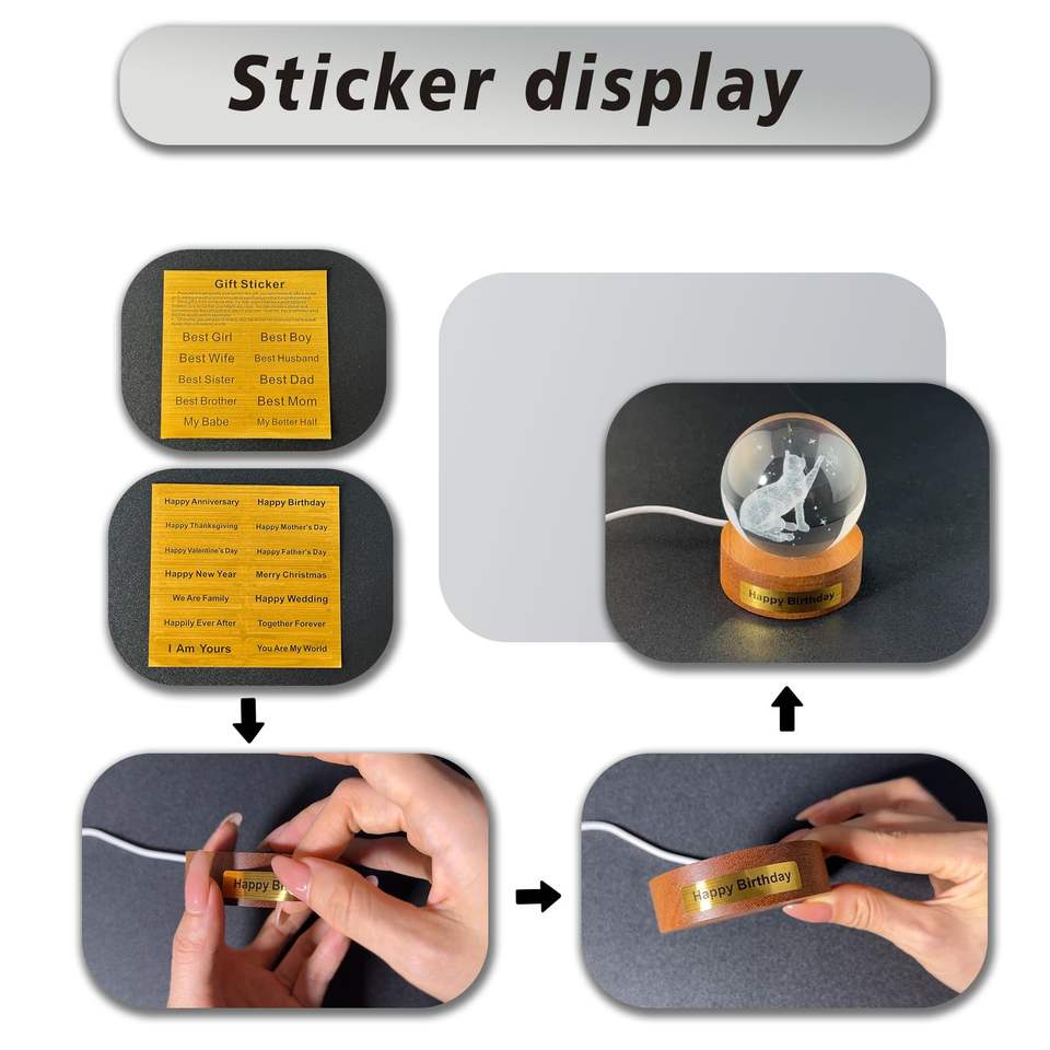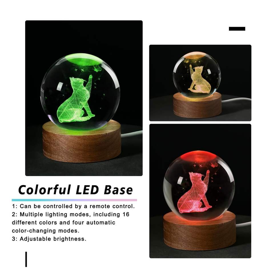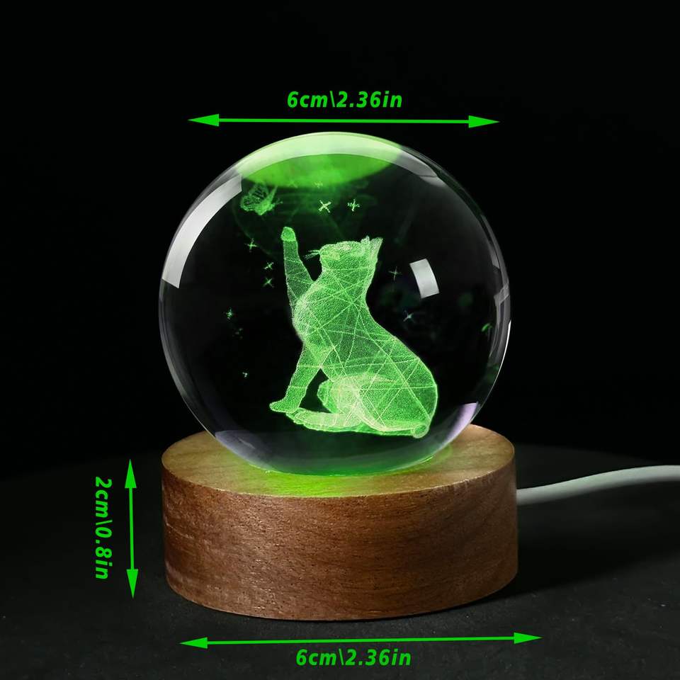 Bola de cristal luminiscente grabada con láser 3D pisapapeles arte Feng Shui gato bola de cristal soporte gato estrellas Luna esfera de cristal luminosa