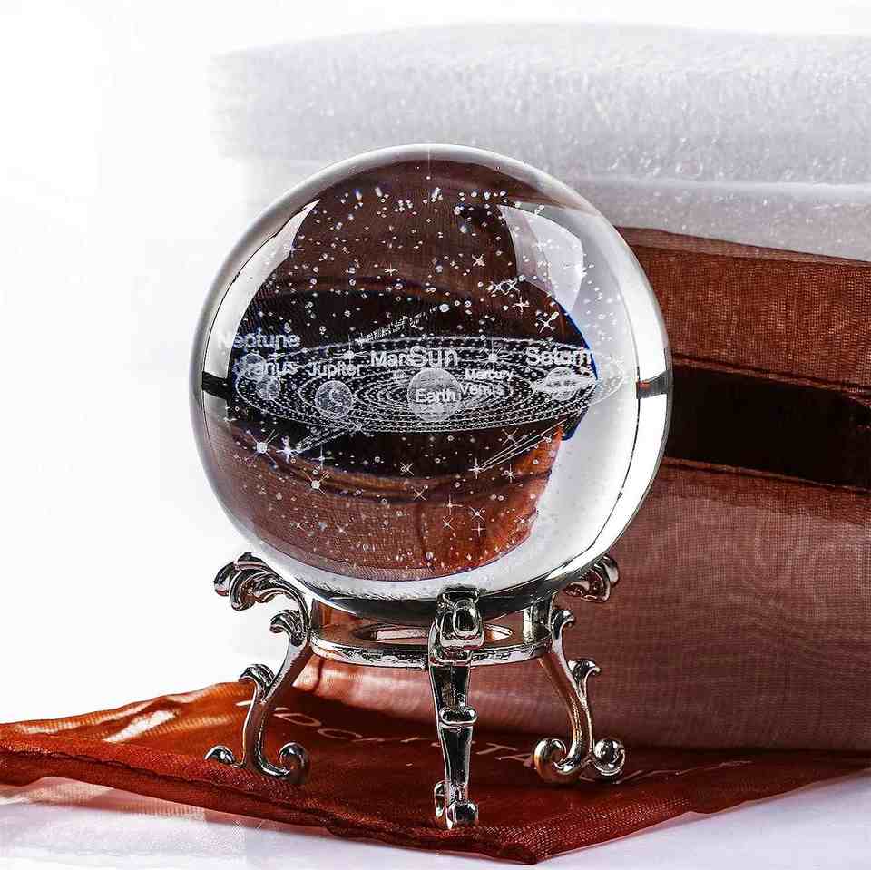 Esfera de Cristal con Sistema Galáctico Grabado en Láser 3D, Colores Arcoíris, Modelo de Planetas Astronómicos, Directo de Fábrica, para Interiores