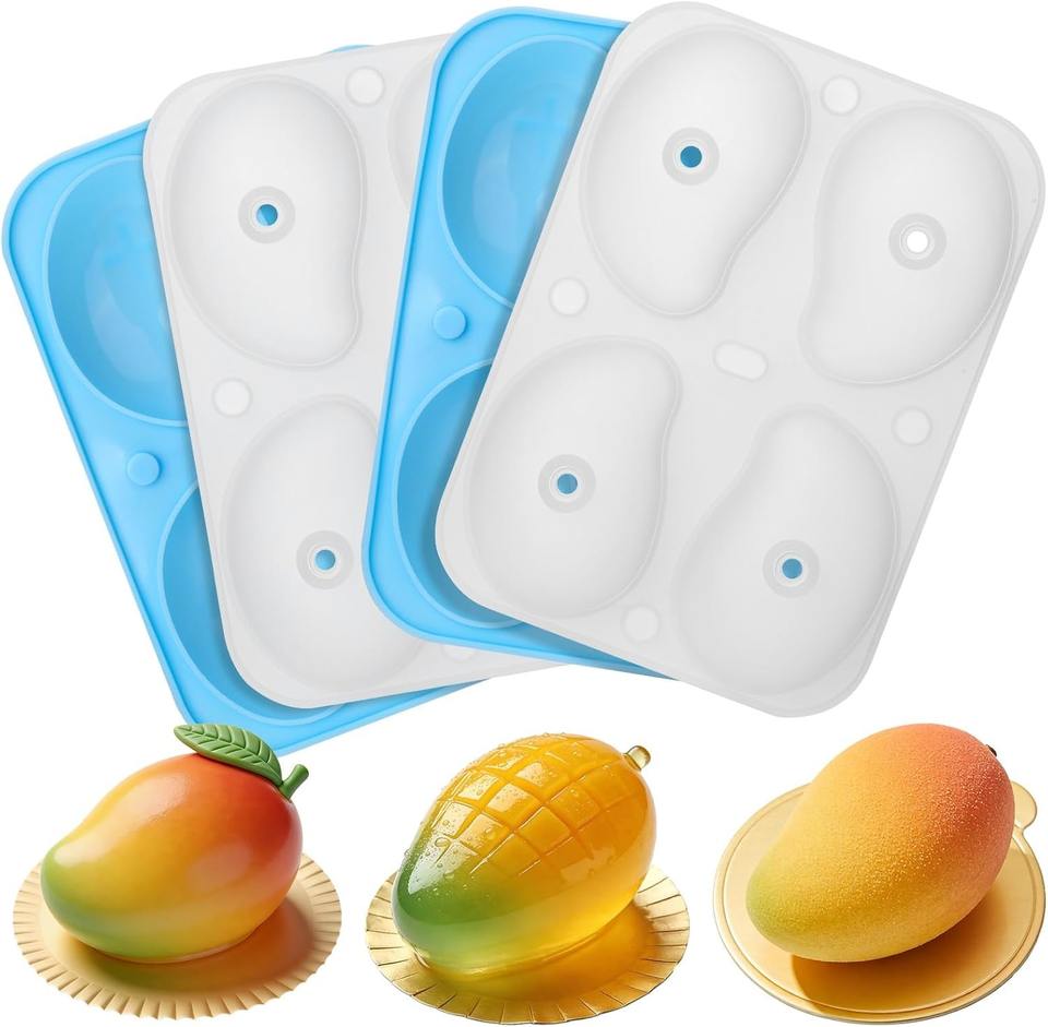 Molde de Silicona 3D con Forma de Mango - 4 Cavidades para Pudín de Frutas, Repostería, Mousse y Decoración de Pasteles