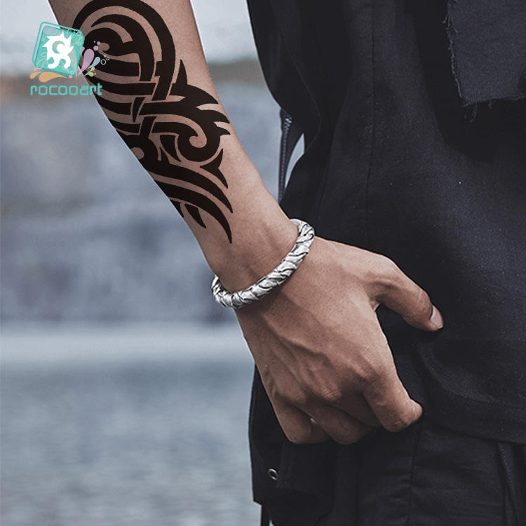 3D nuevos hombres geniales media manga brazo tótem temporal tatuaje pegatinas cuerpo arte tatuaje Tribal reposabrazos diseños