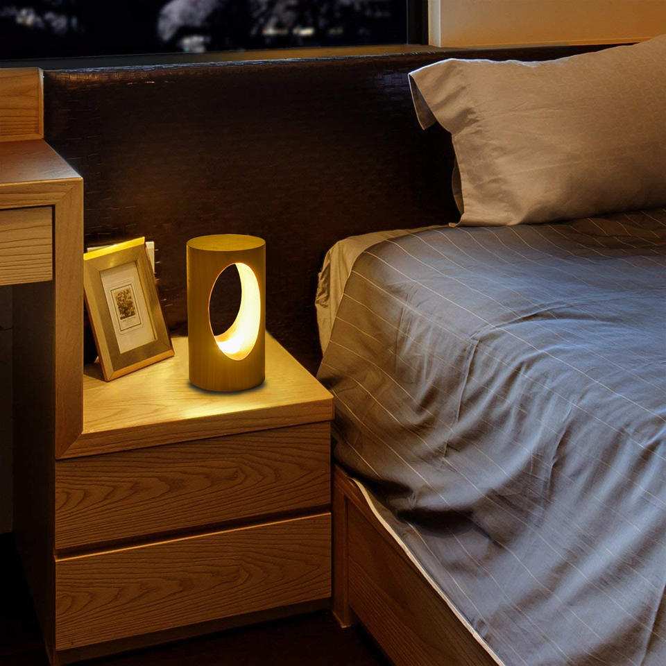 Lámpara de Noche 3D USB de Madera para Mesa de Noche, Decoración de Dormitorio, Lámpara de Mesa Geométrica, Luz Nocturna LED Recargable y Regulable