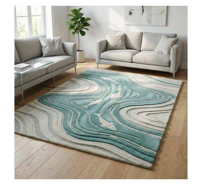 Alfombra de lana hecha a mano con diseño de olas oceánicas en 3D, hermoso diseño, apta para mascotas, alfombra de pelo alto para decoración de hoteles y villas.