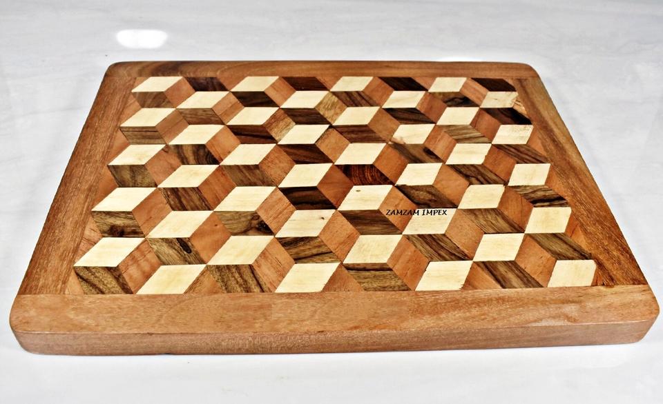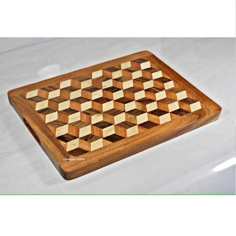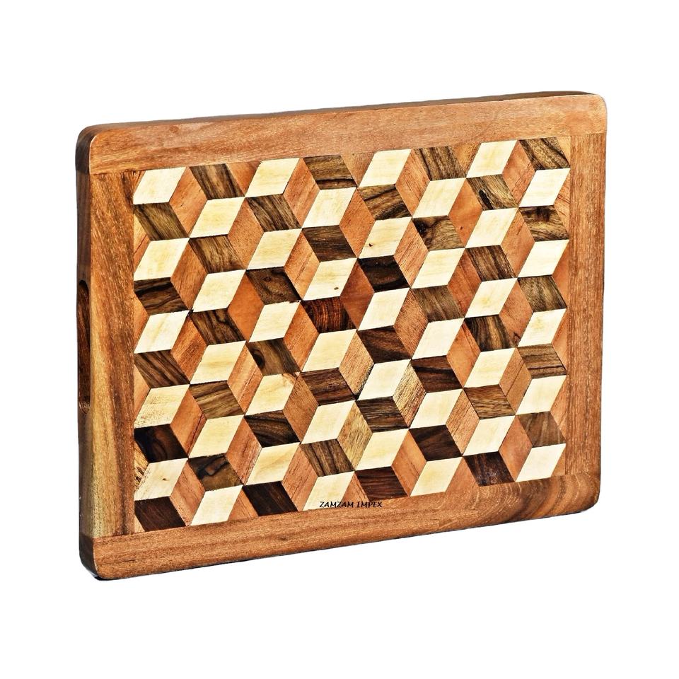 Tabla de cortar de madera con diseño 3D, tabla de cortar de grano final hecha a mano con diseño de ilusión geométrica para Cocina, Servicio, uso de regalo