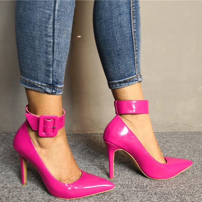 Zapatos de Vestir para Mujer con Tacón Fino y Correa de Tobillo con Patrones 3D, Parte Superior Reflectante, Punta Puntiaguda, Zapatos de Salón para Citas, Talla Grande 47