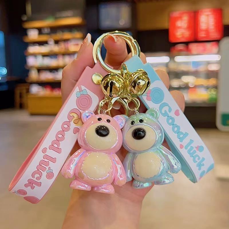 3D colgante encantador dibujos animados fresa oso llavero Widget bolsa decoración llaveros al por mayor regalos personalizados para niños