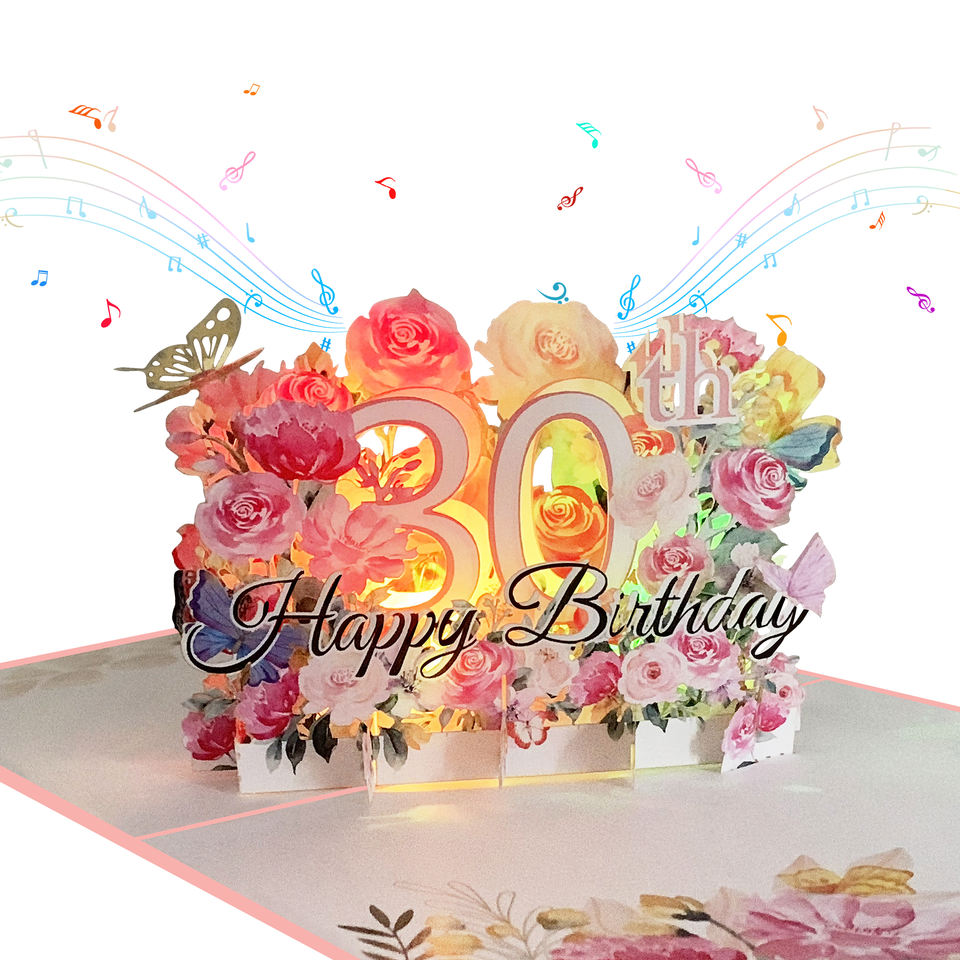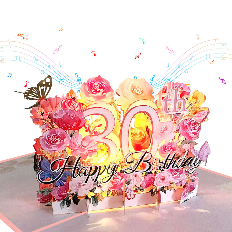 Tarjeta de Invitación 3D Pop-up con Luz LED, Feliz Cumpleaños, Aniversario, con Música, Corte Láser, Papel de Regalo de Lujo