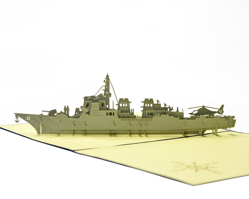 Modelo emergente 3D Barco de batalla detallado para el Día del Padre Tarjetas emergentes impresas compensadas para regalos de vacaciones o cumpleaños