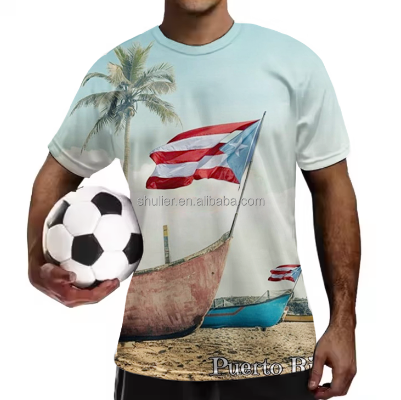 Camisetas personalizadas con estampado 3D Coqui al por mayor, camiseta de manga corta con logotipo personalizado de la bandera de Puerto Rico para hombre, funda para silla