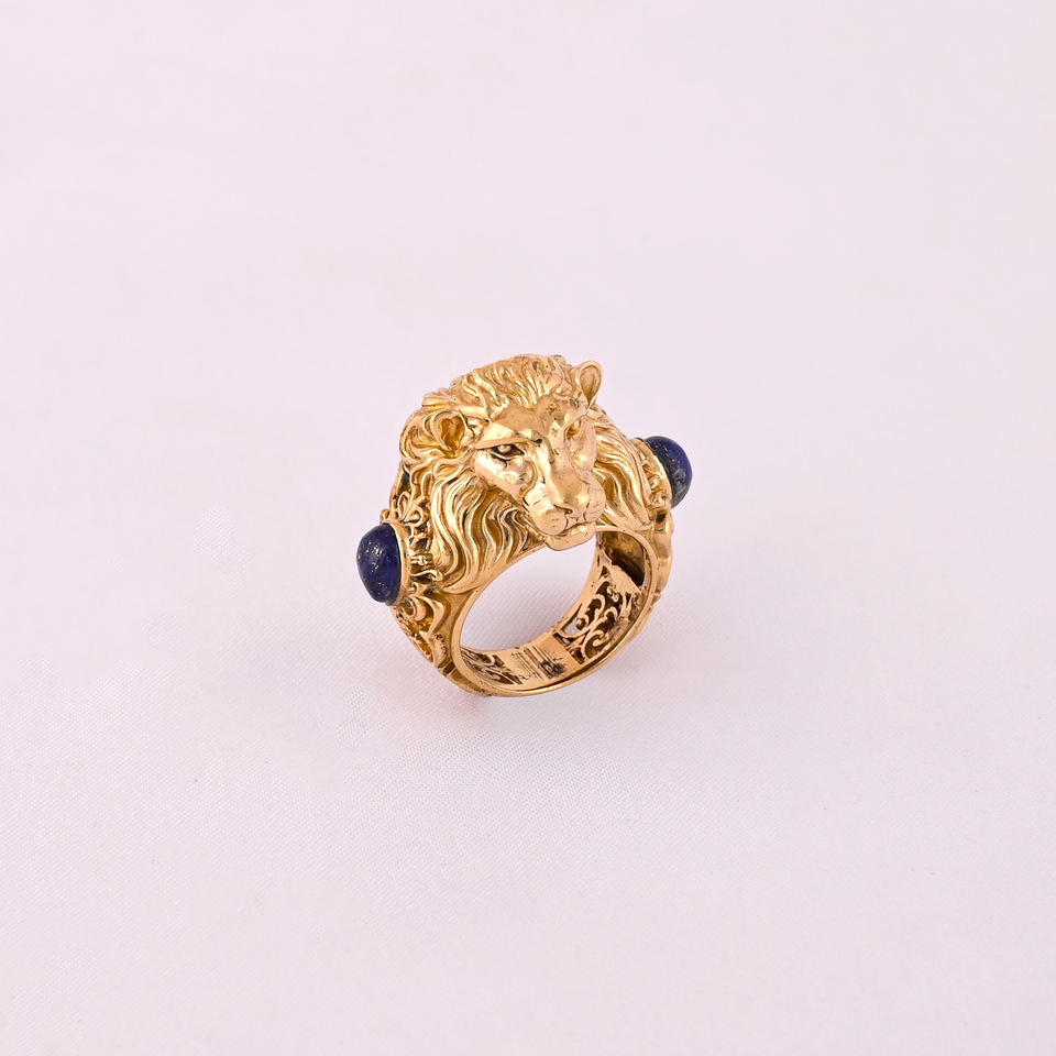 3D-Print Lion Ring With Blue Chalcedony Stone For Women