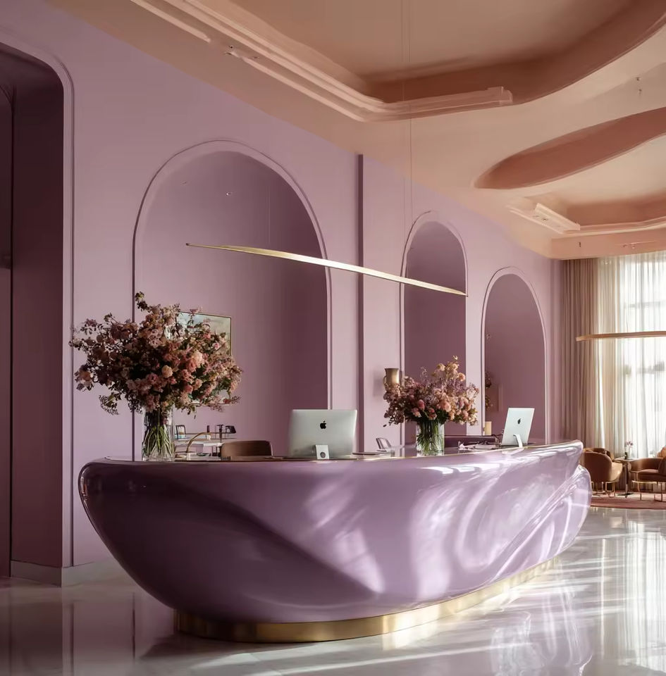 Mostrador de Recepción con Textura Impresa en 3D, Mostrador de Recepción de Inspiración Natural en Beige para Proyectos de Spa, Resorts y Hoteles