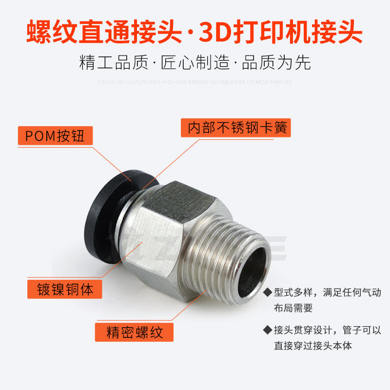 Conector de Tubo de Alimentación Remoto para Impresora 3D, Accesorio de Entrada PC4-M6/01mm, Conector Neumático de Paso a Paso