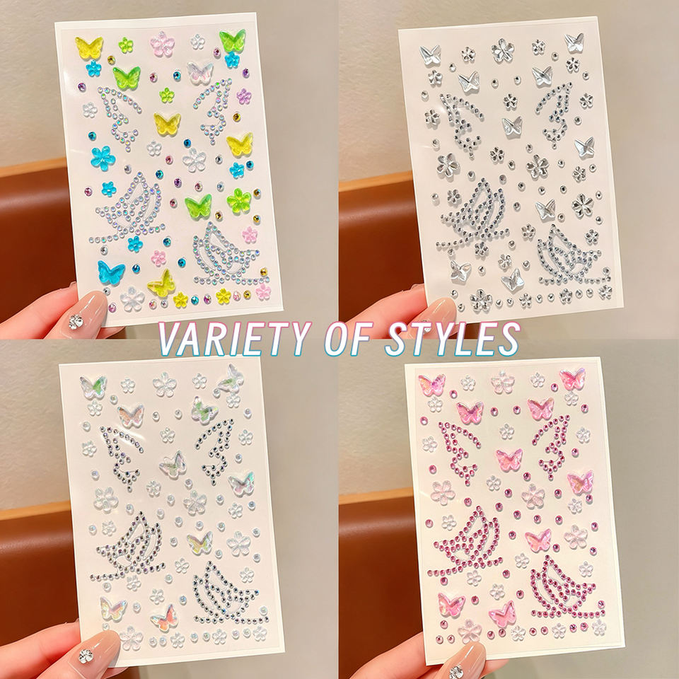 Pegatinas Faciales 3D con Diamantes de Imitación en Forma de Mariposa, Joyería, Pegatinas Faciales con Diamantes de Flores, Calcomanías Brillantes de Cristal para el Cuerpo y la Cara