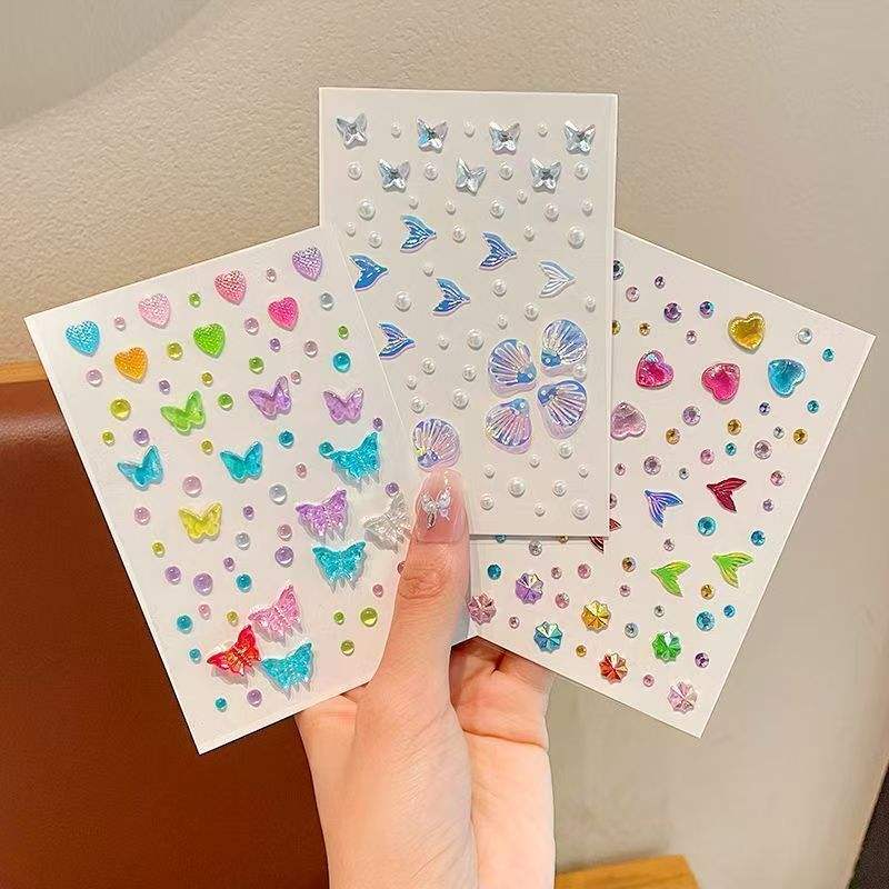 Pegatinas de Tatuajes Temporales 3D con Diamantes de Imitación, Joyería, Estrella, Corazón, Cara, Gema, Joyas Faciales y Corporales
