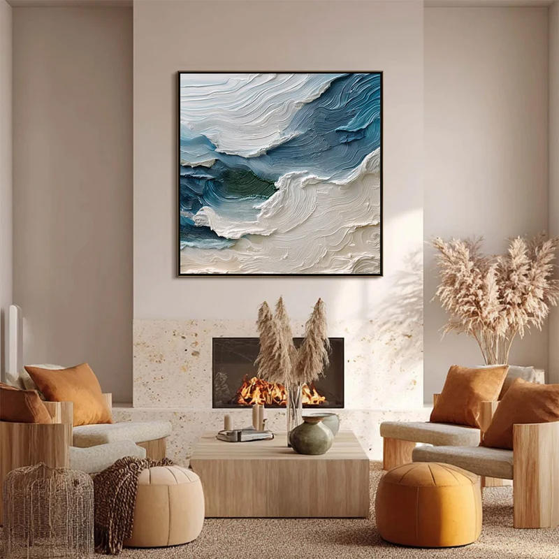 Arte Mural en Lienzo Panorámico con Textura 3D, Diseño de Olas Turquesas, Decoración de Pared