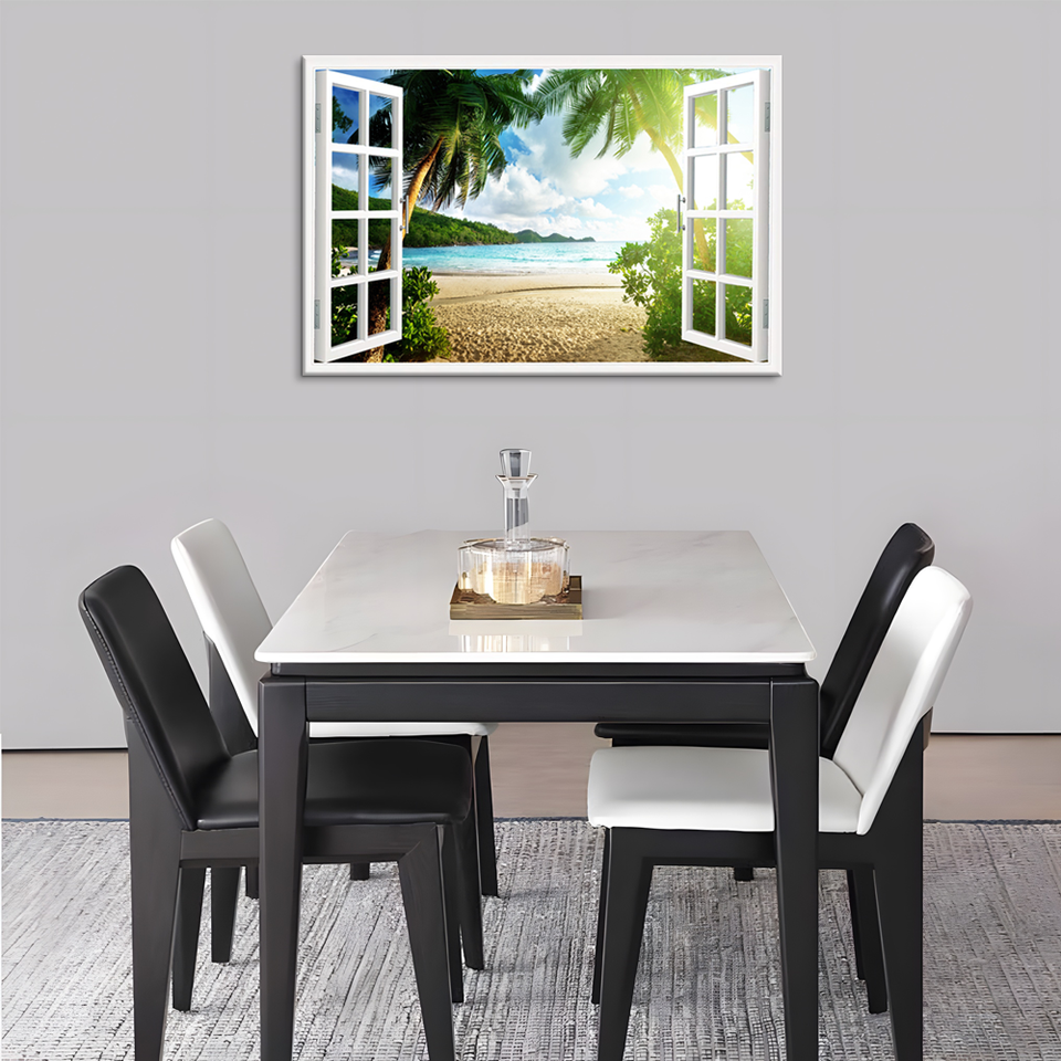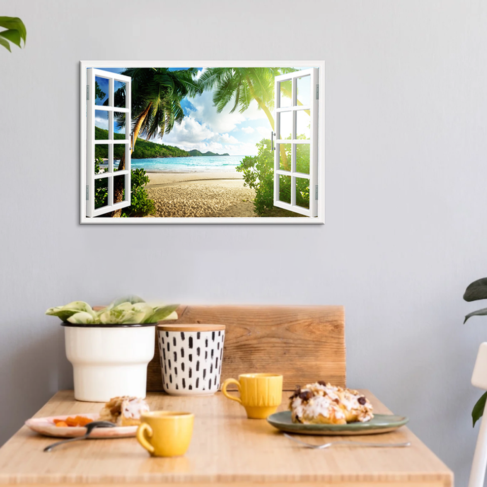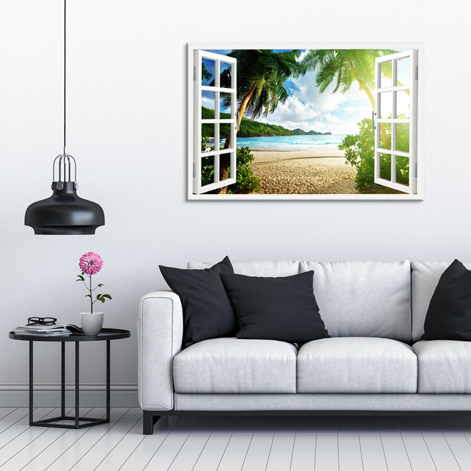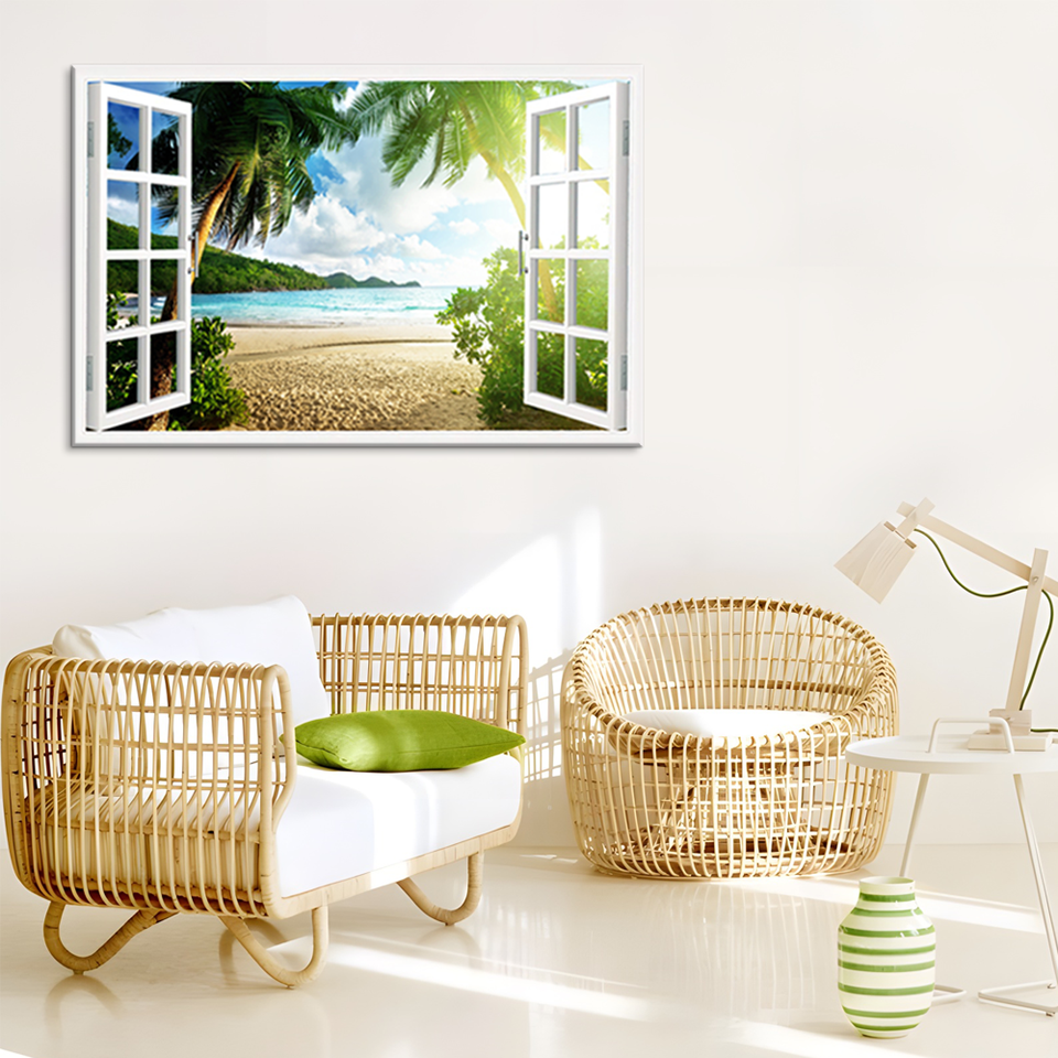 3D ventana Vista pared arte Playa Mar vista palmeras naturaleza pintura impresión en lienzo paisaje imagen habitación pared decoración cartel
