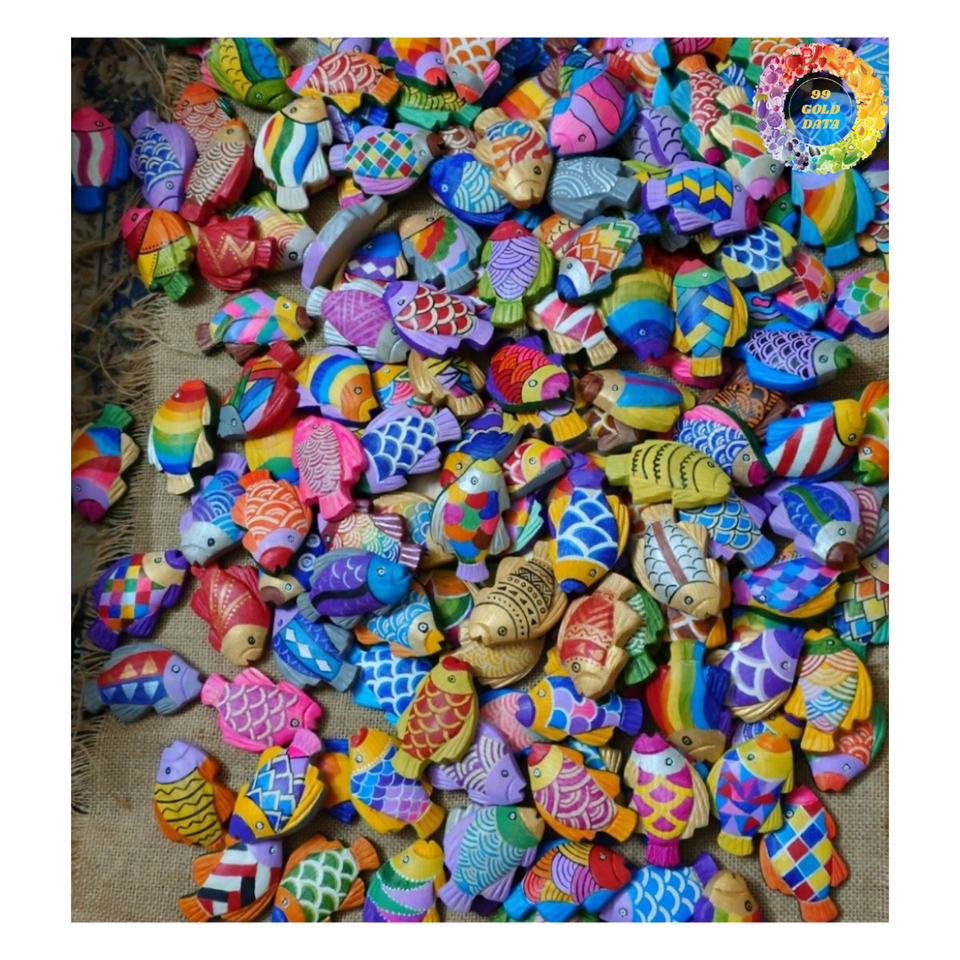 Juguete de pez de madera 3D para colgar en la pared, pez de madera pintado tallado con colores brillantes, recuerdos de pez de madera sin terminar