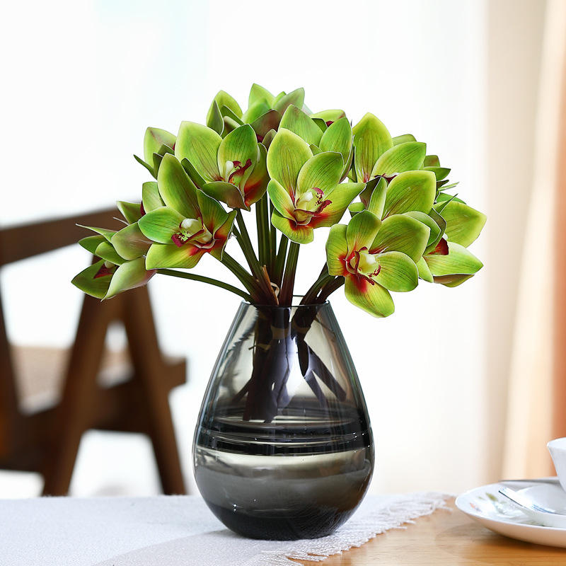 Flor Artificial de Cymbidium 3D6 de Primera Calidad, Color Amarillo Naranja, Decoración para el Hogar, Ramo de Alta Simulación