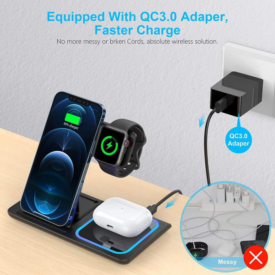 Cargador inalámbrico, 3 en 1 Inalámbrico de la estación de carga, Magnético, Cargador de escritorio
